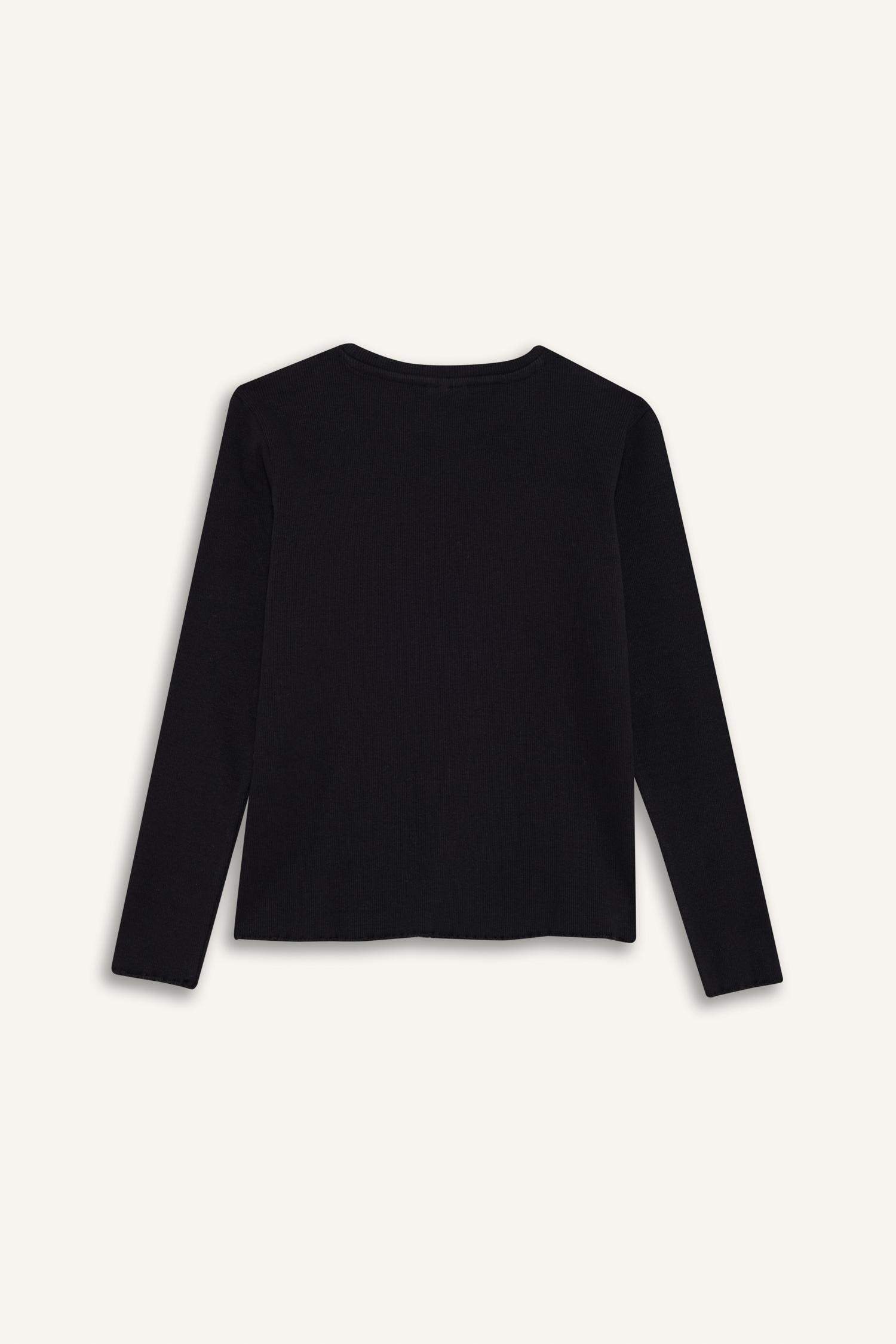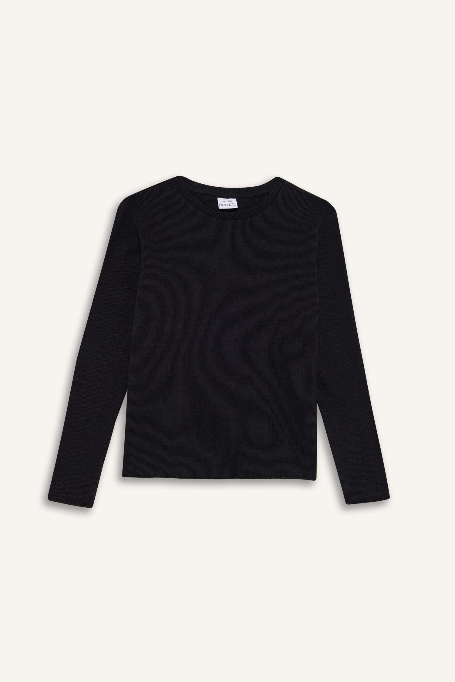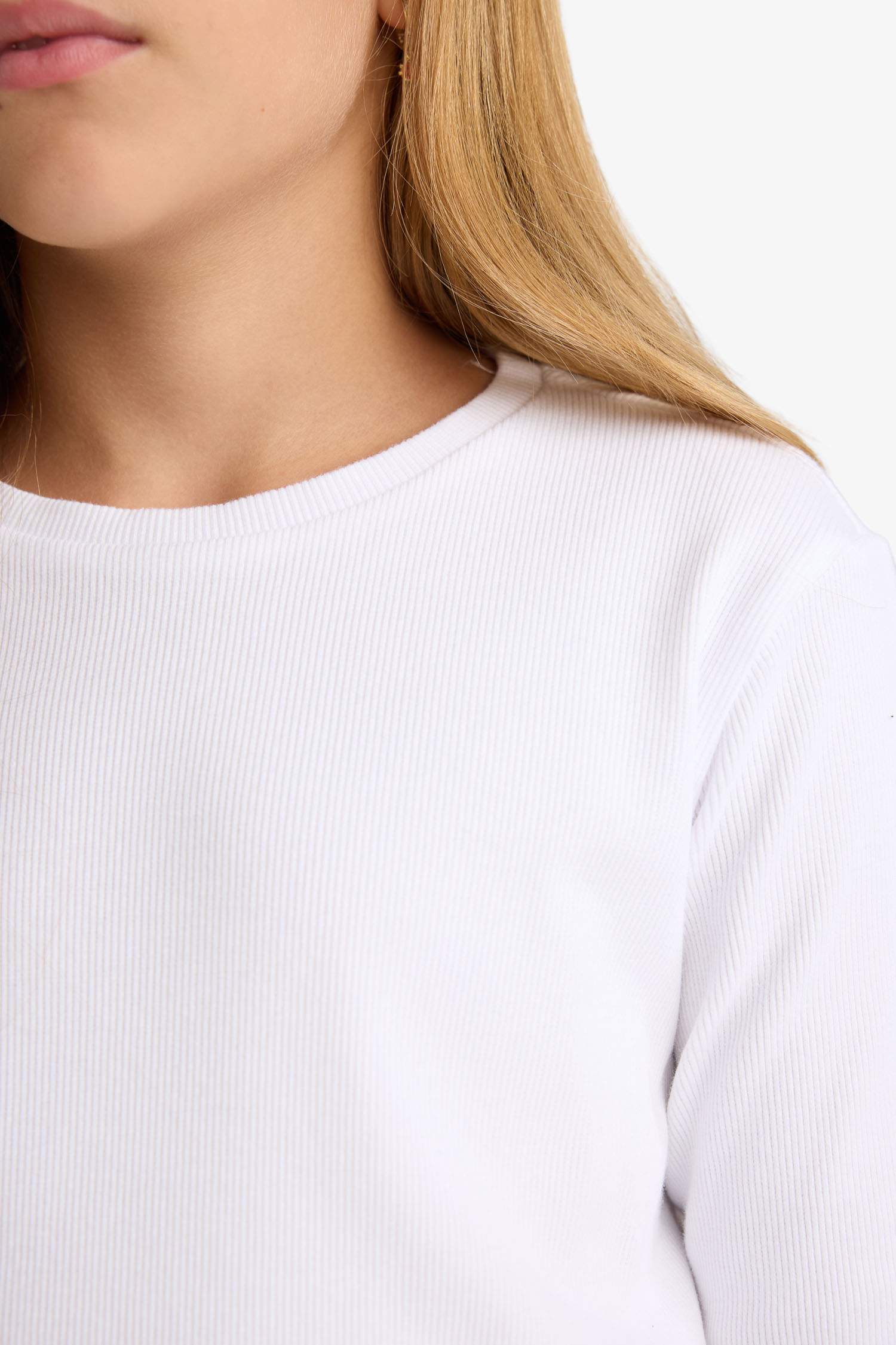 Girls Crew Neck Basic Plain Ribbed Camisole Long Sleeve School T-Shirt