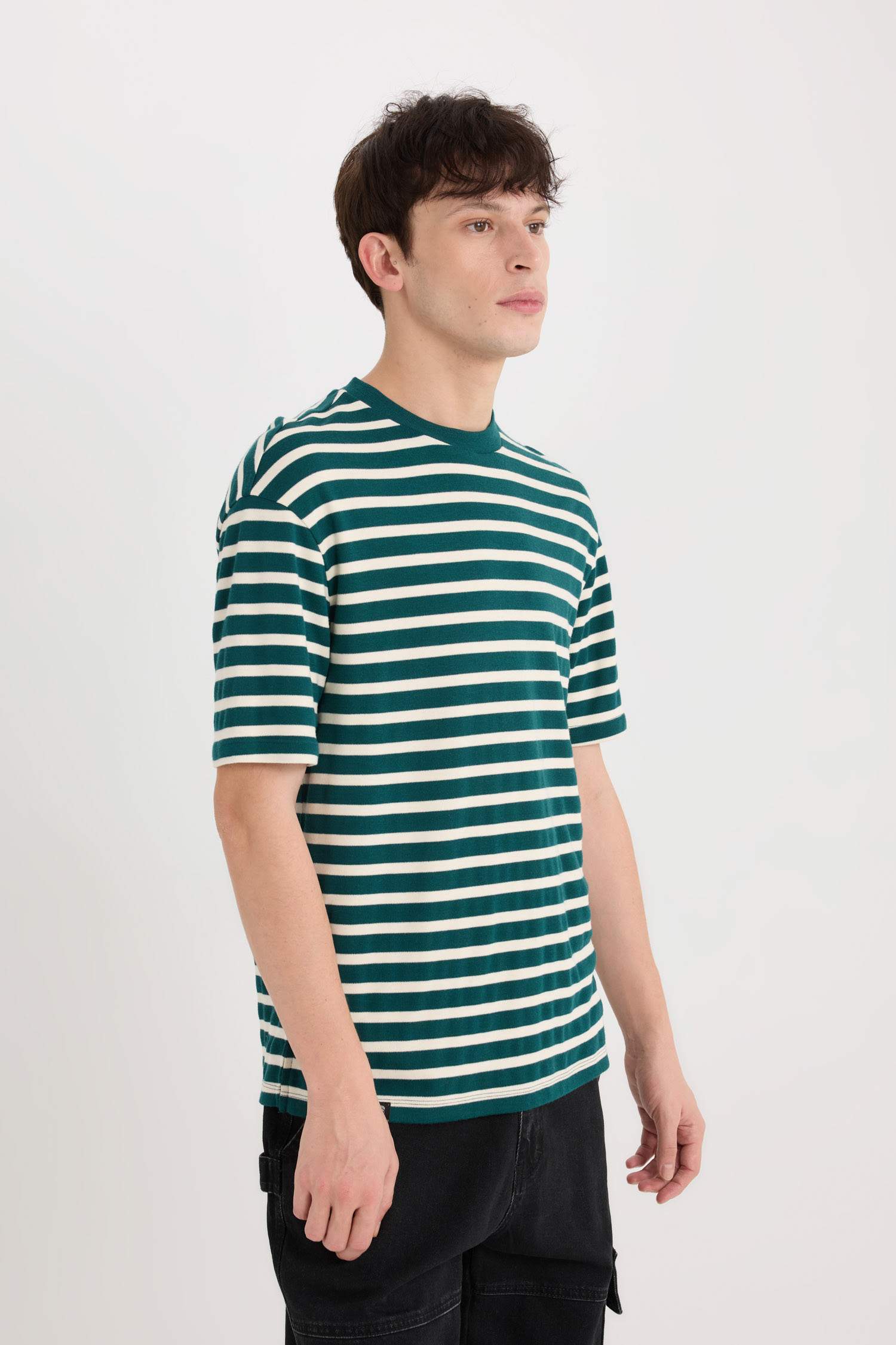 Boxy Fit Crew Neck Striped T-Shirt