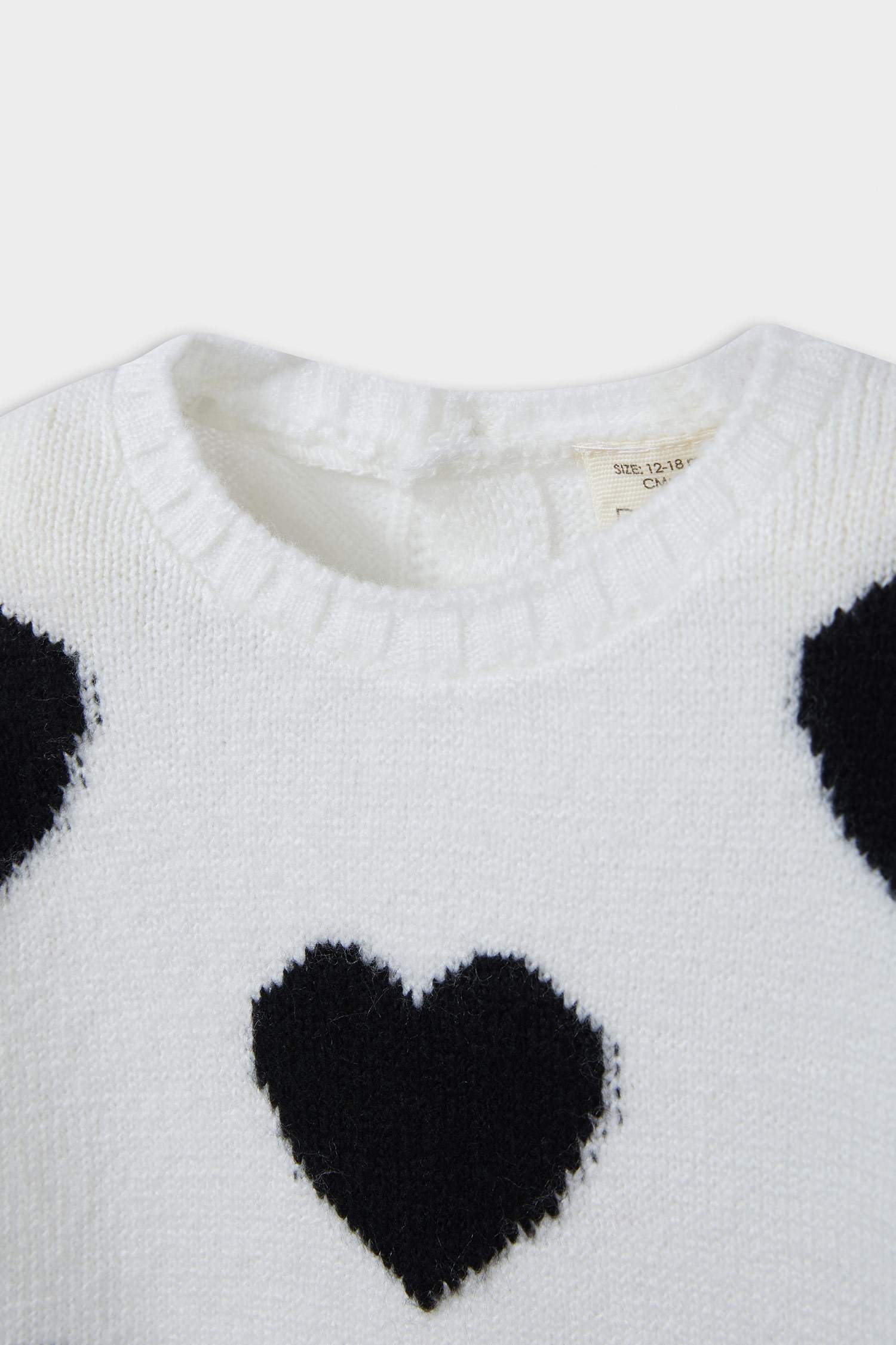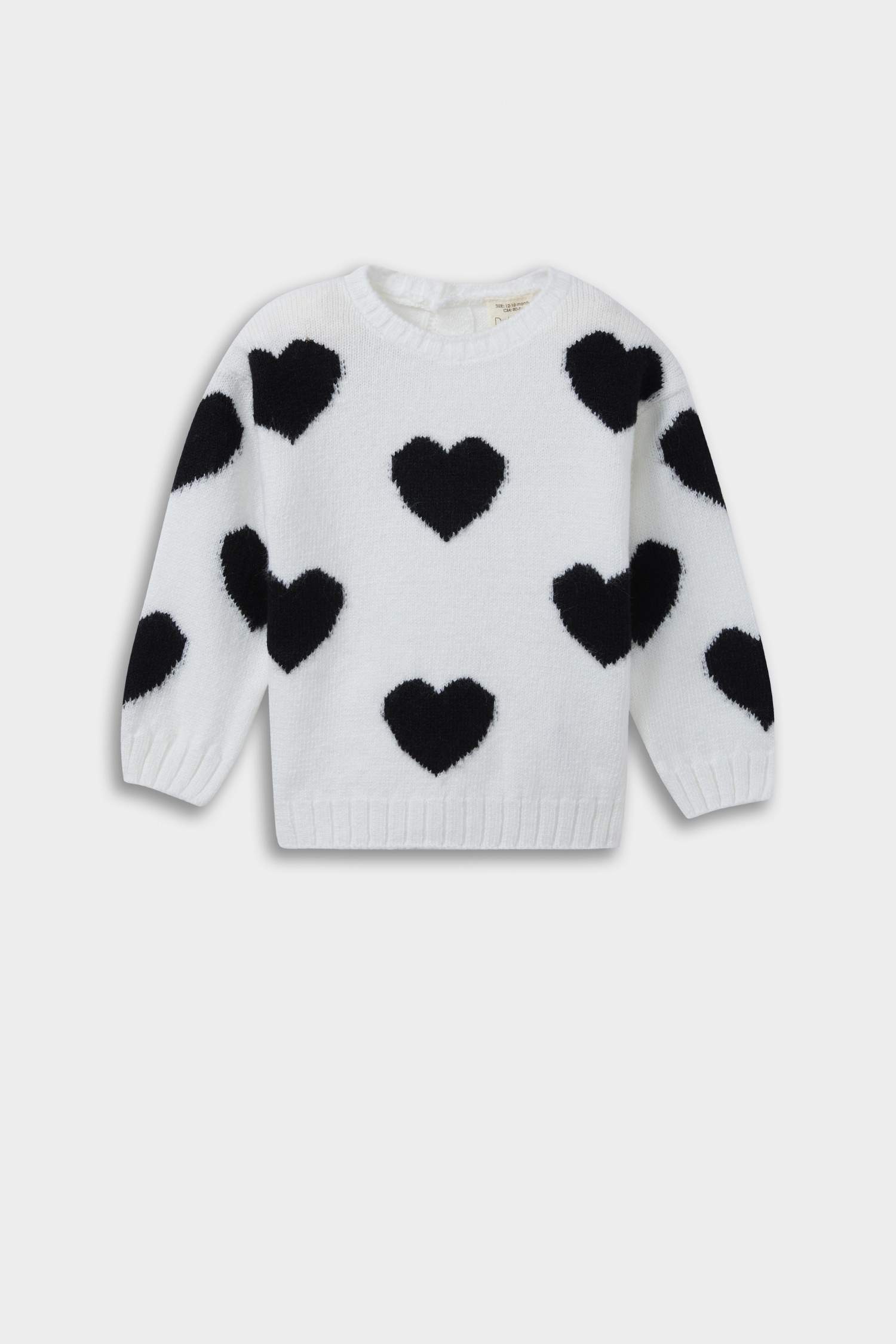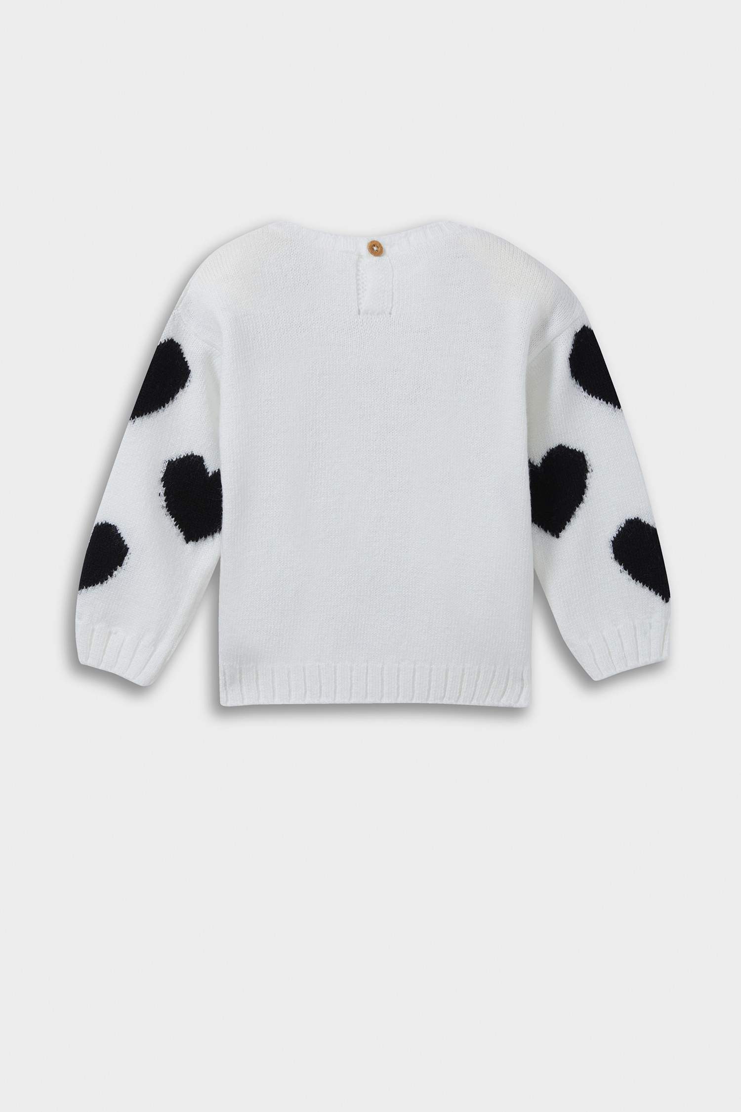 Baby Girl Crew Neck Heart Patterned Knitwear Sweater