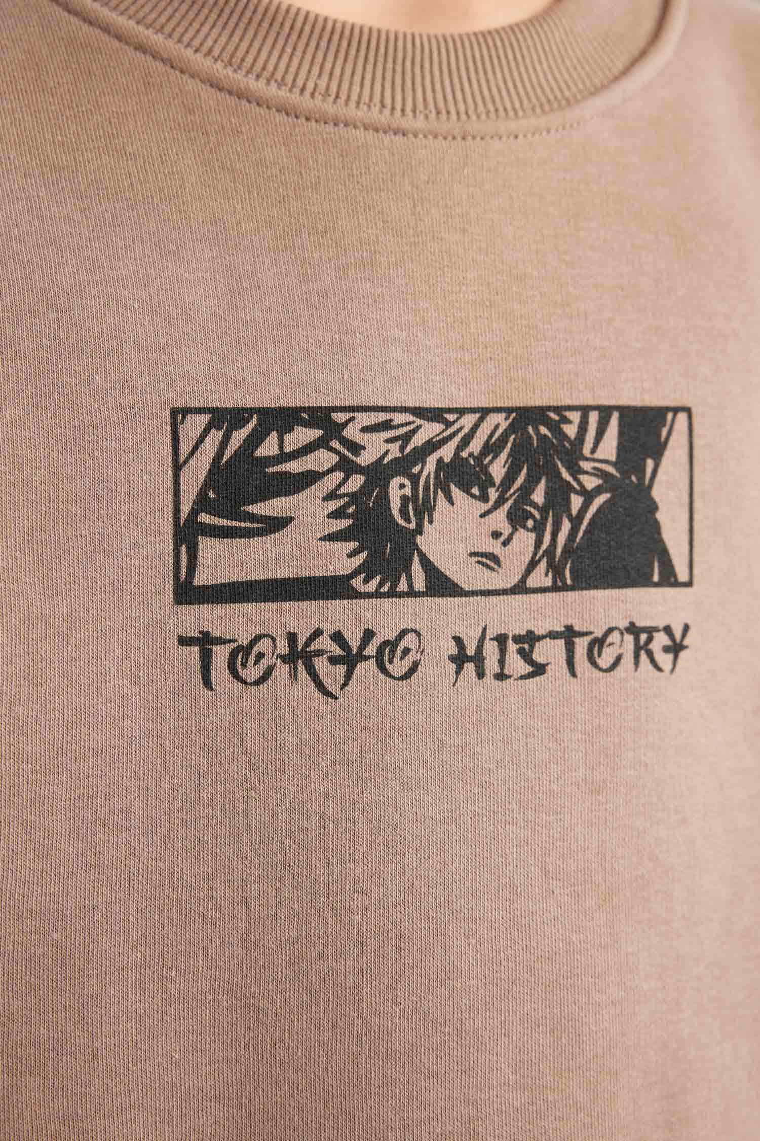 Boys Oversize Wide Pattern Back Printed Crew Neck Sweatshirt