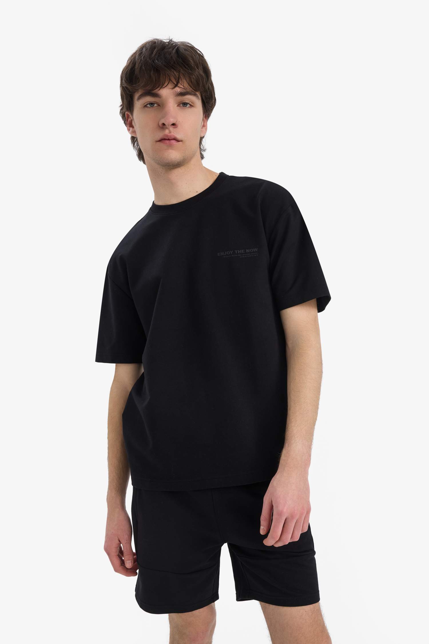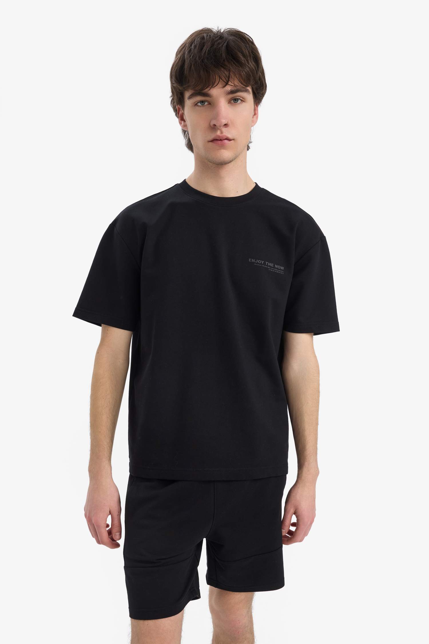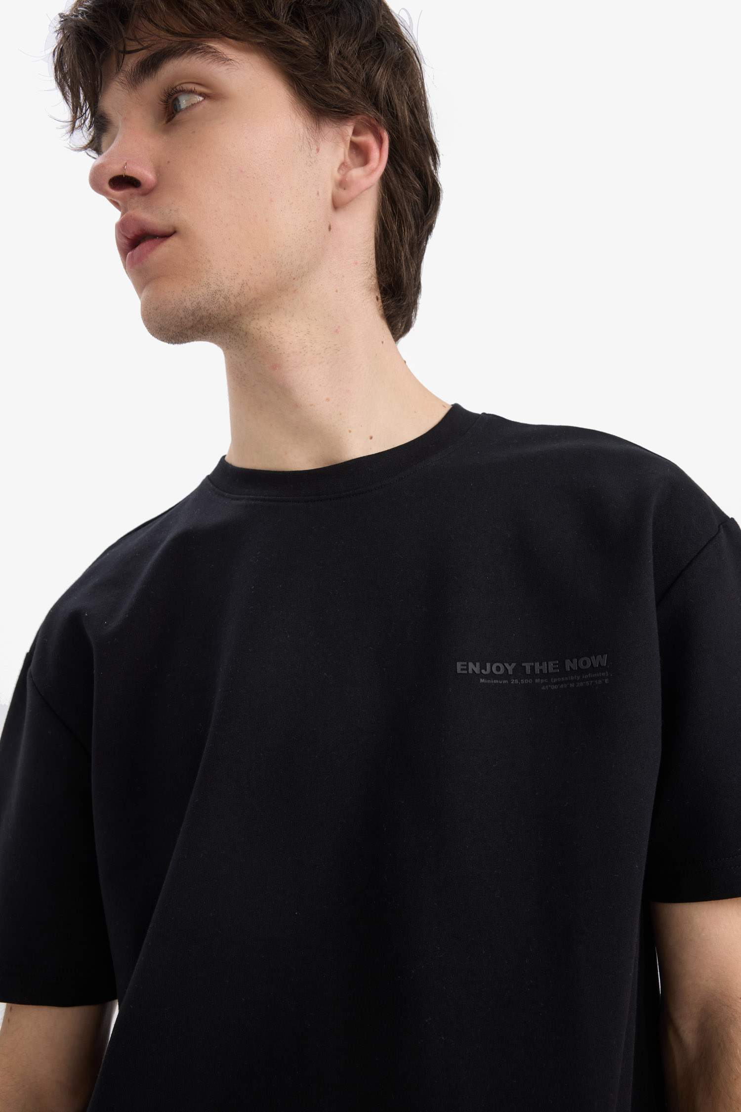 Boxy Fit Crew Neck Printed Heavy Fabric T-Shirt