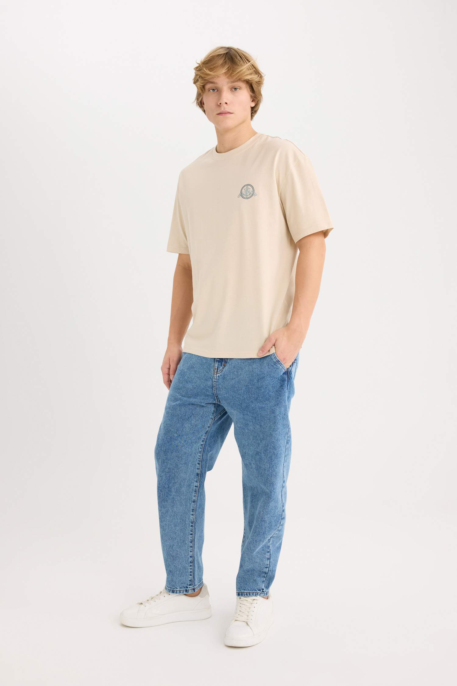 100% Cotton Boxy Fit Cycling Collar Back Printed Short Sleeve T-Shirt