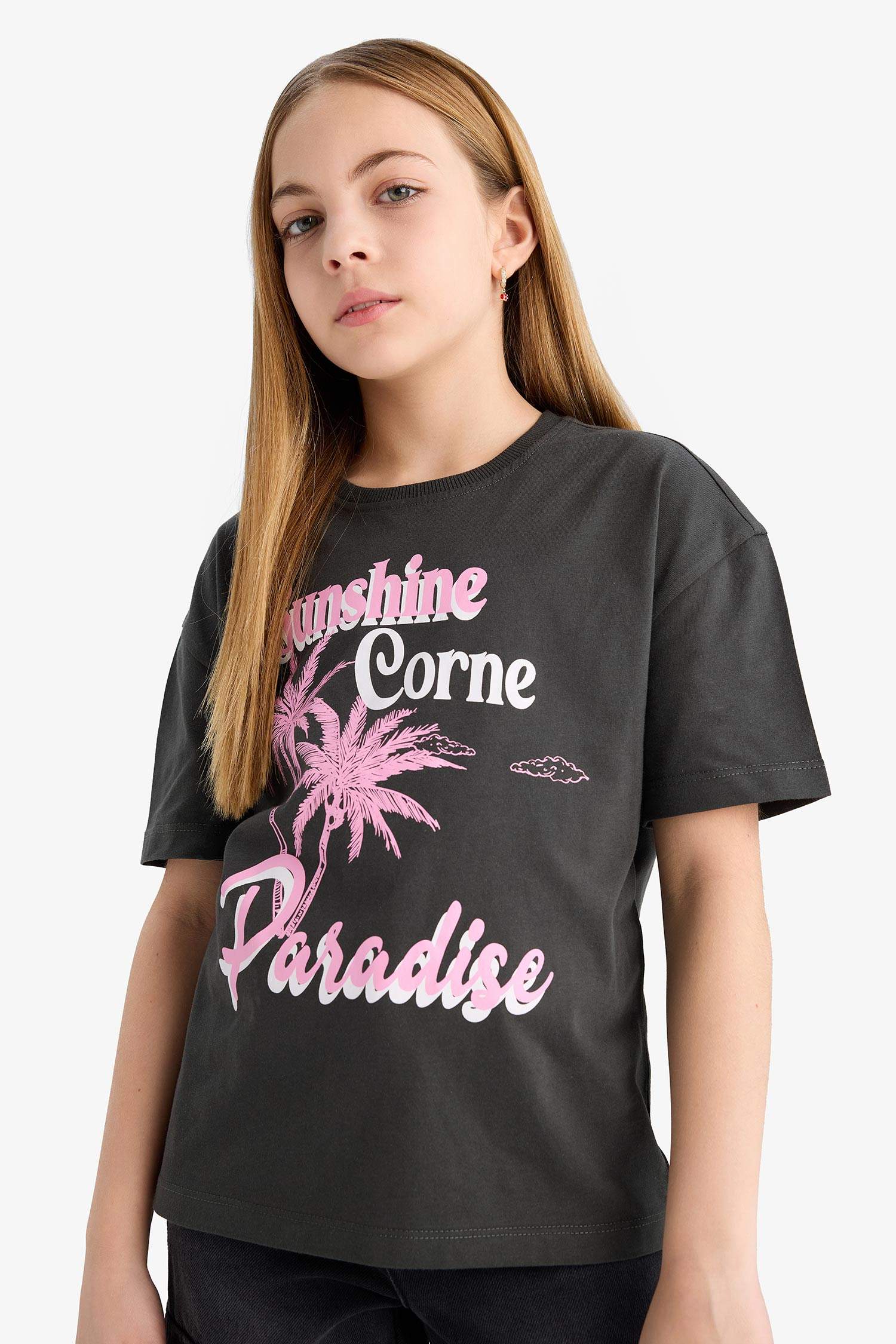 Girl Relax Fit Crew Neck Printed Short Sleeve T-Shirt