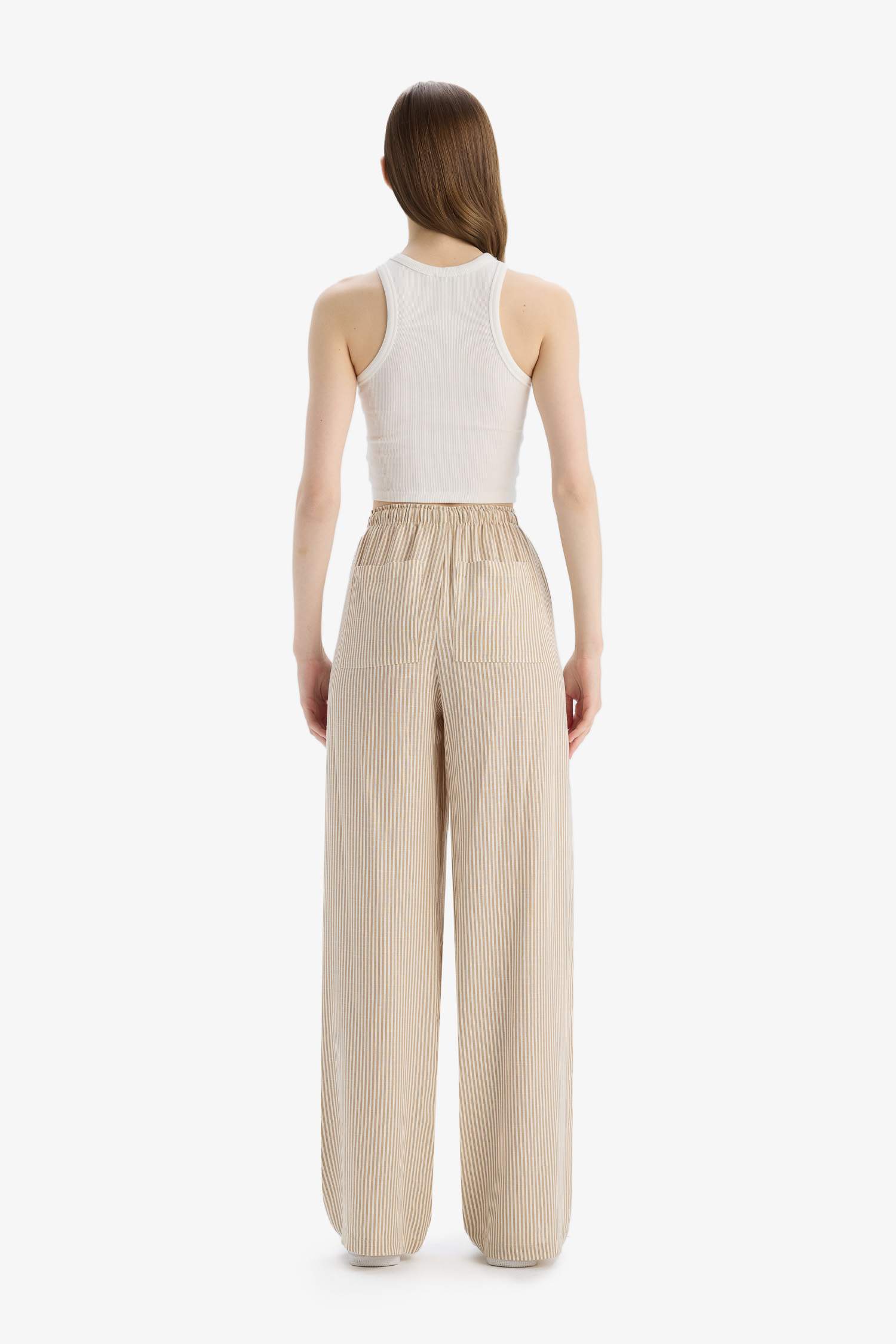 High Waisted Wide Leg Trousers with Pockets in Linen Blend
