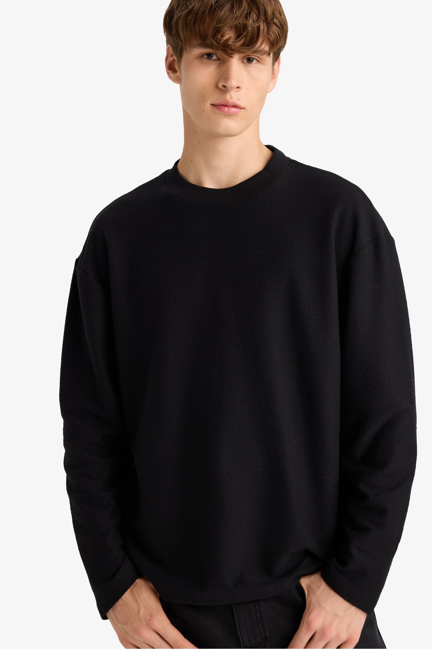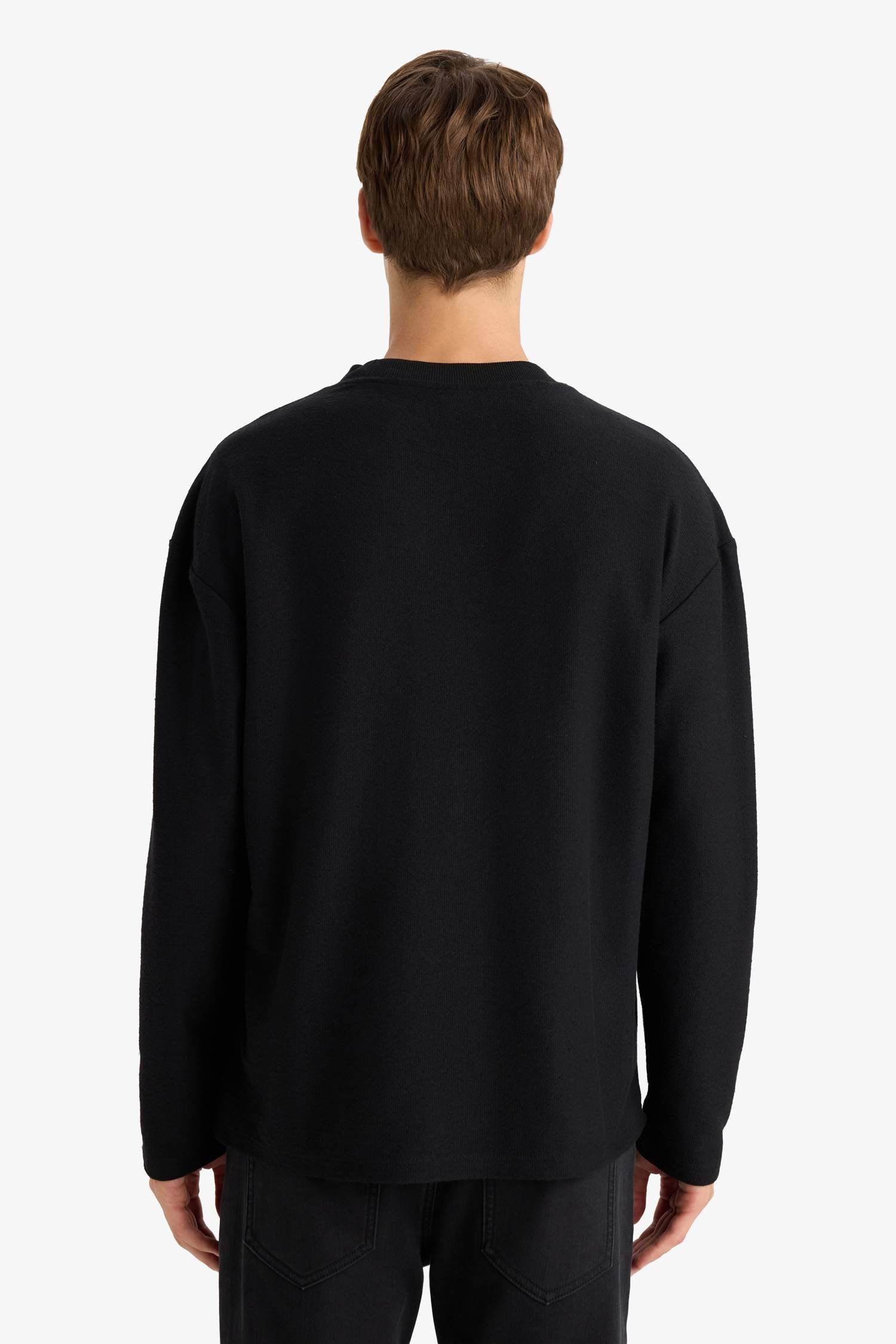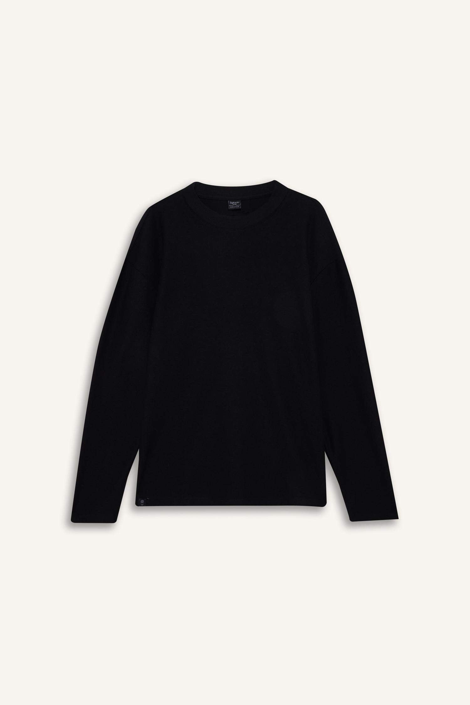 Boxy Fit Relaxed Cut Crew Neck Cotton Long Sleeve T-Shirt