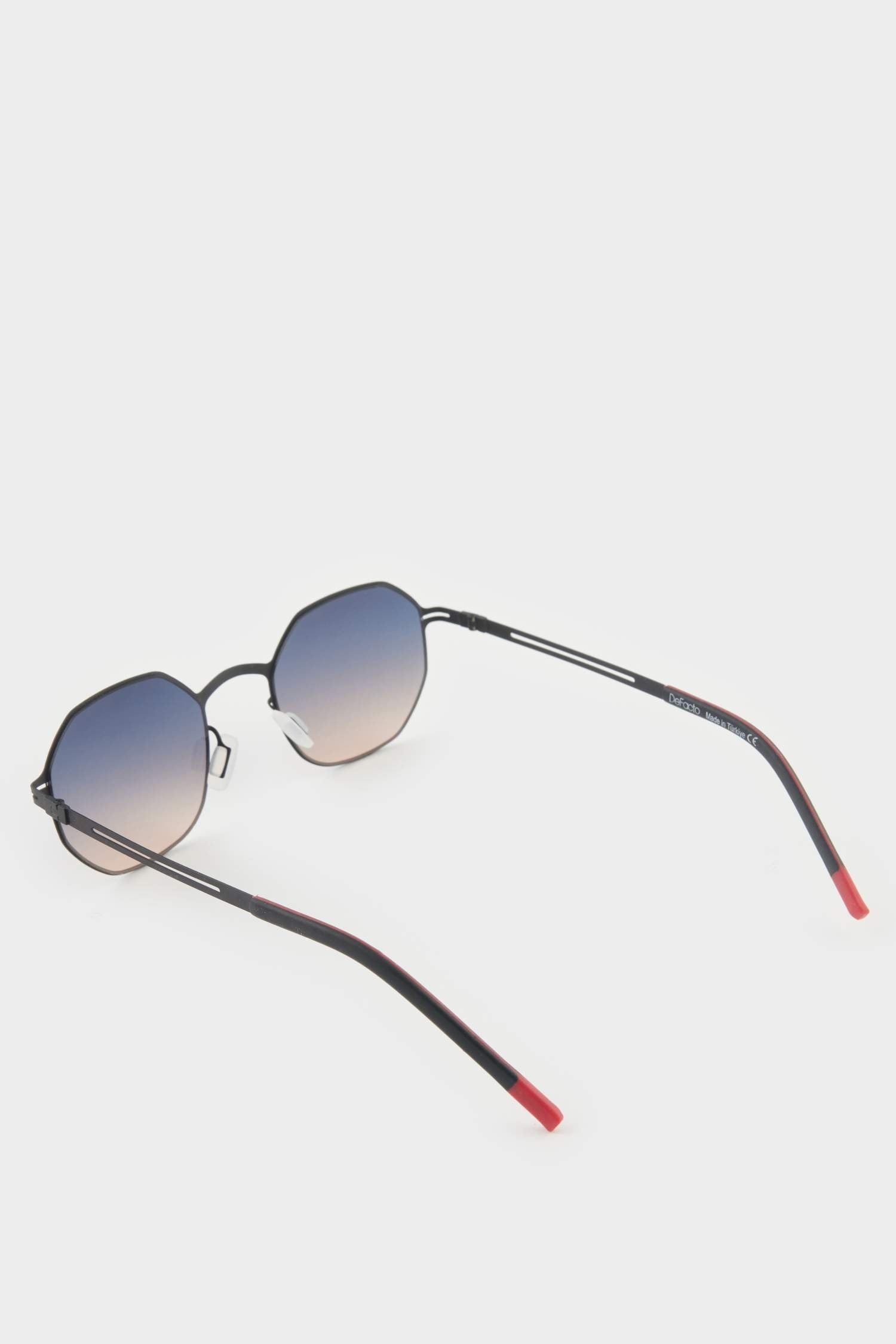 Men's Hexagonal Green Metal Frame Smoked Lens UV Sunglasses