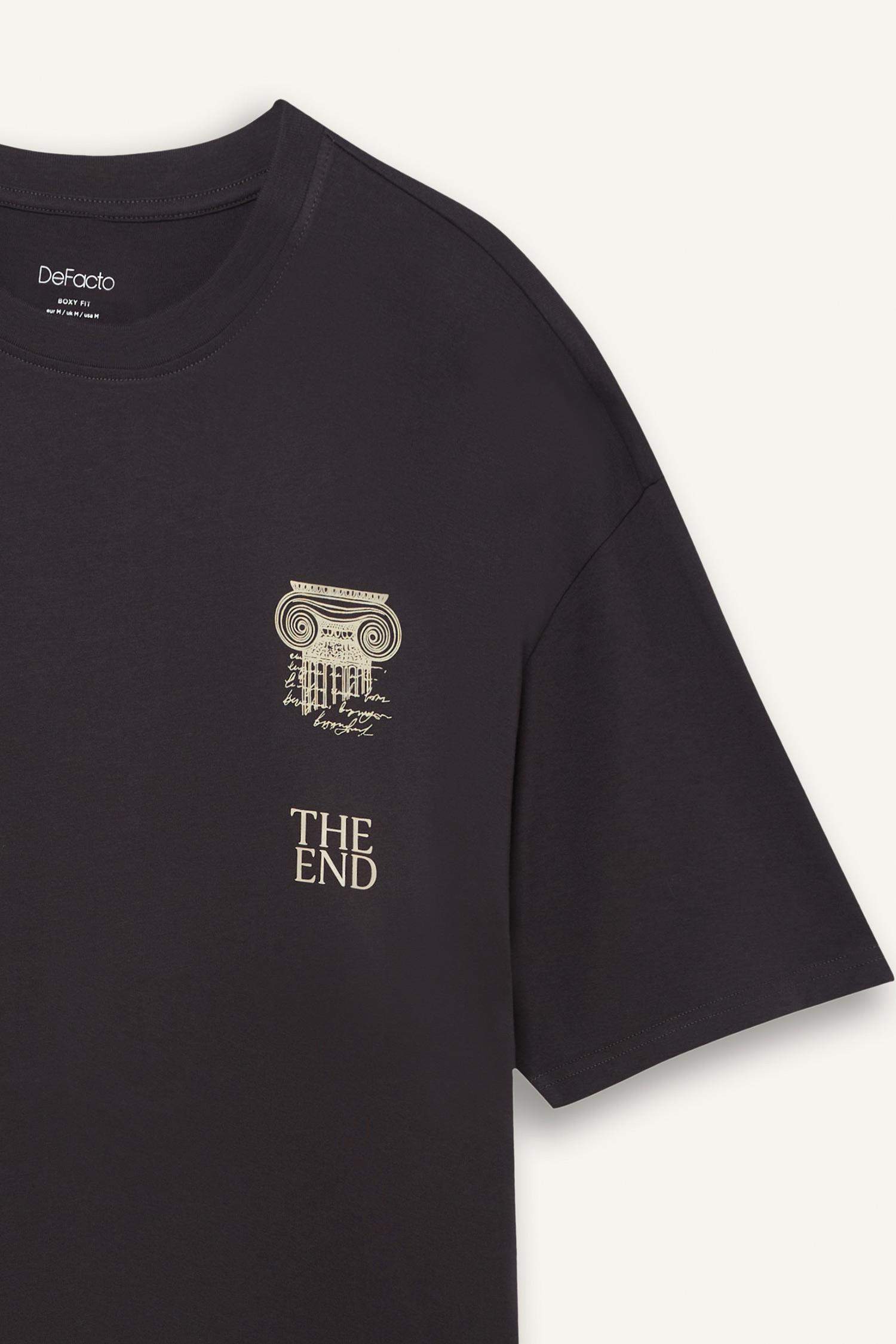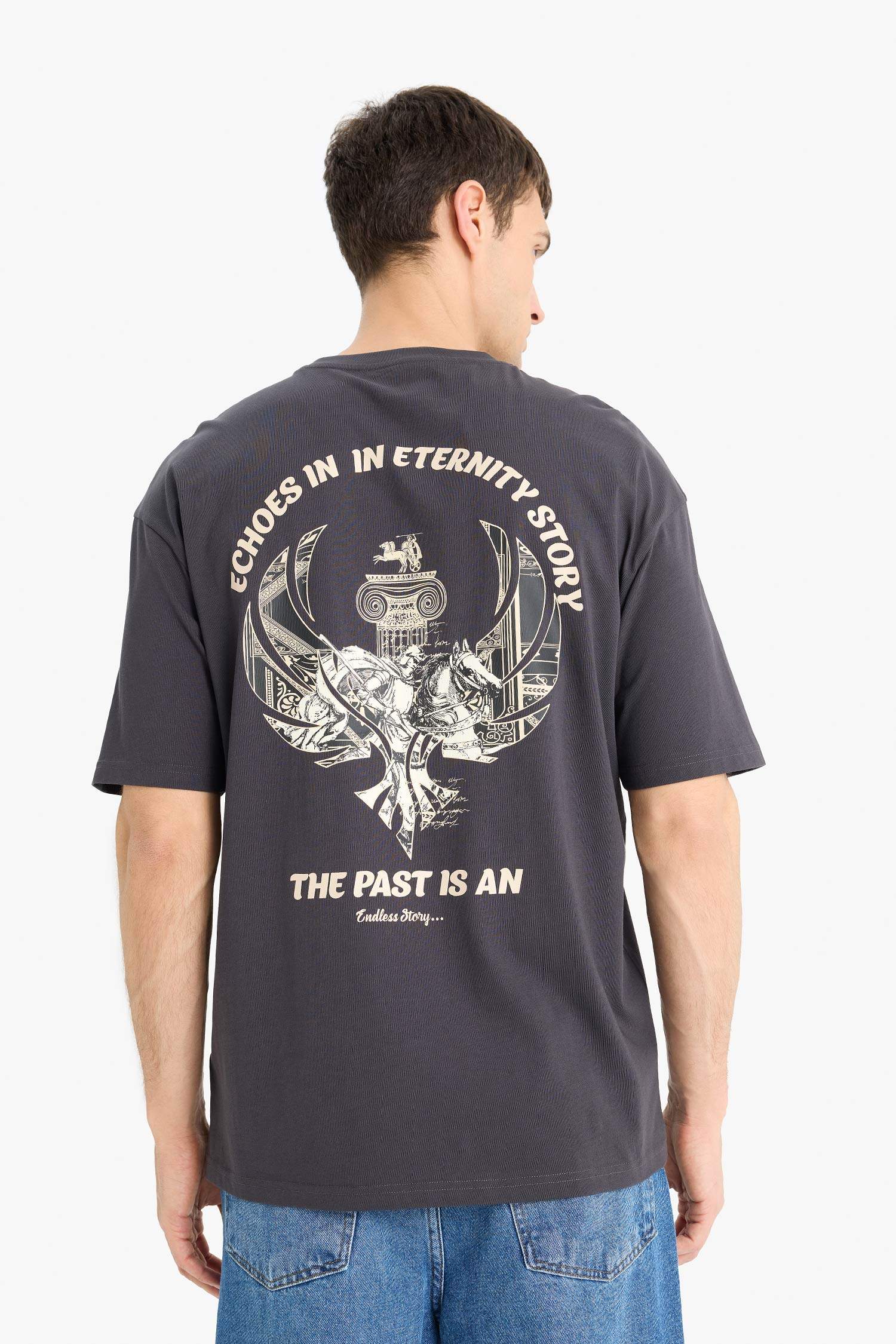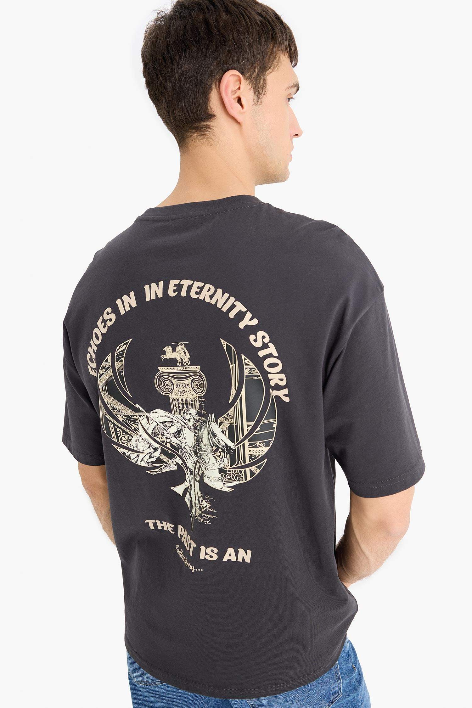 100% Cotton Boxy Fit Relaxed Cut Crew Neck Back Printed Short Sleeve T-Shirt