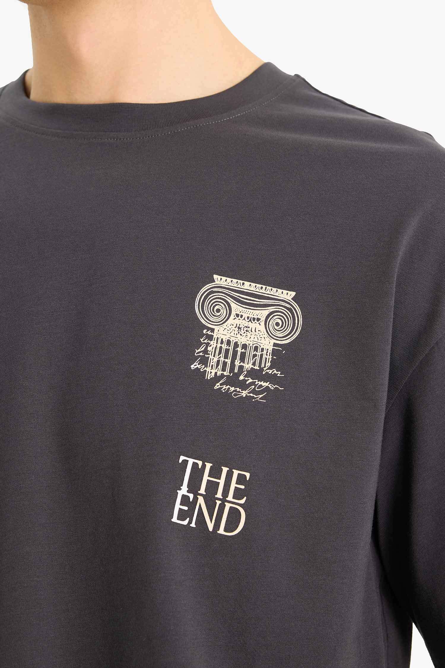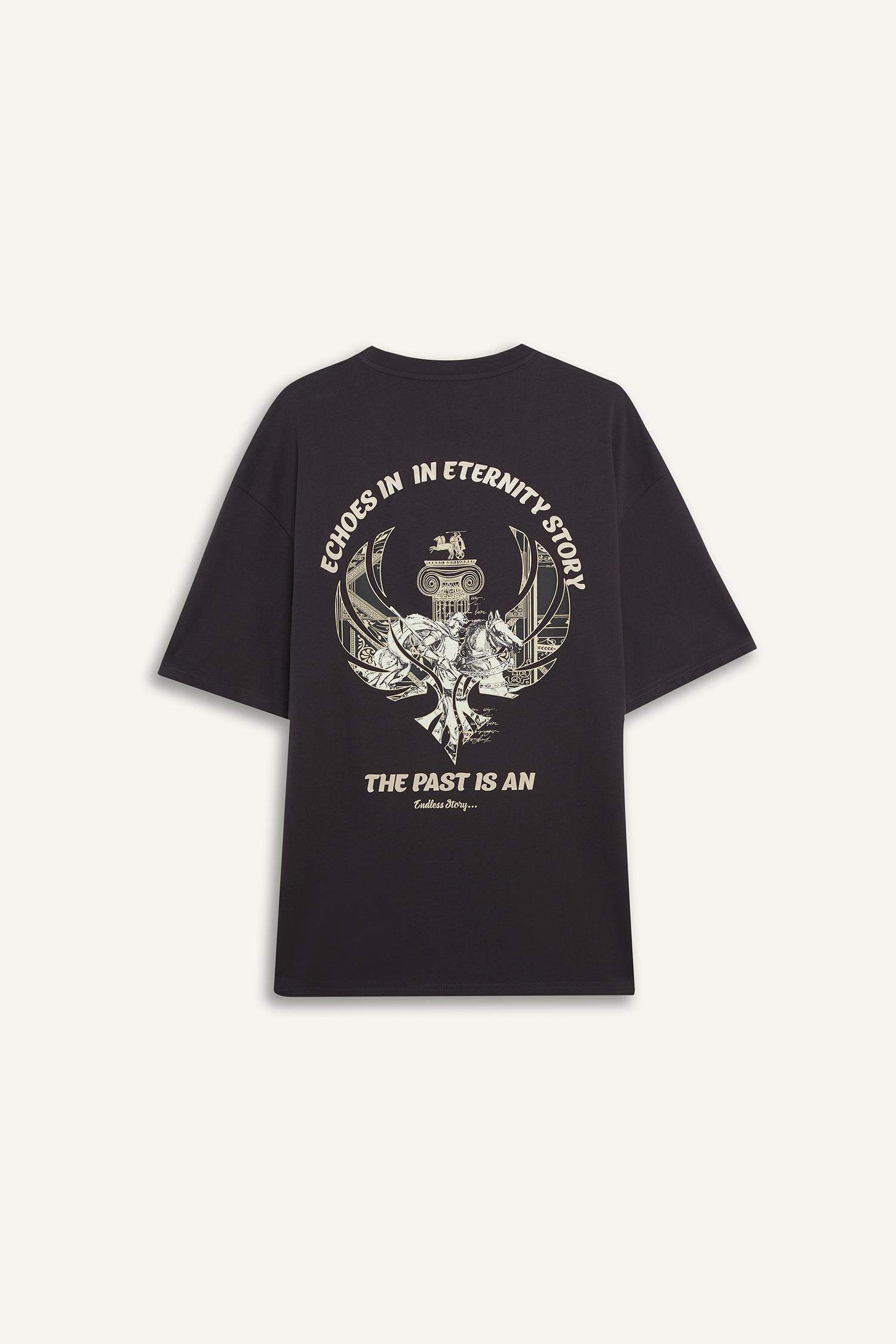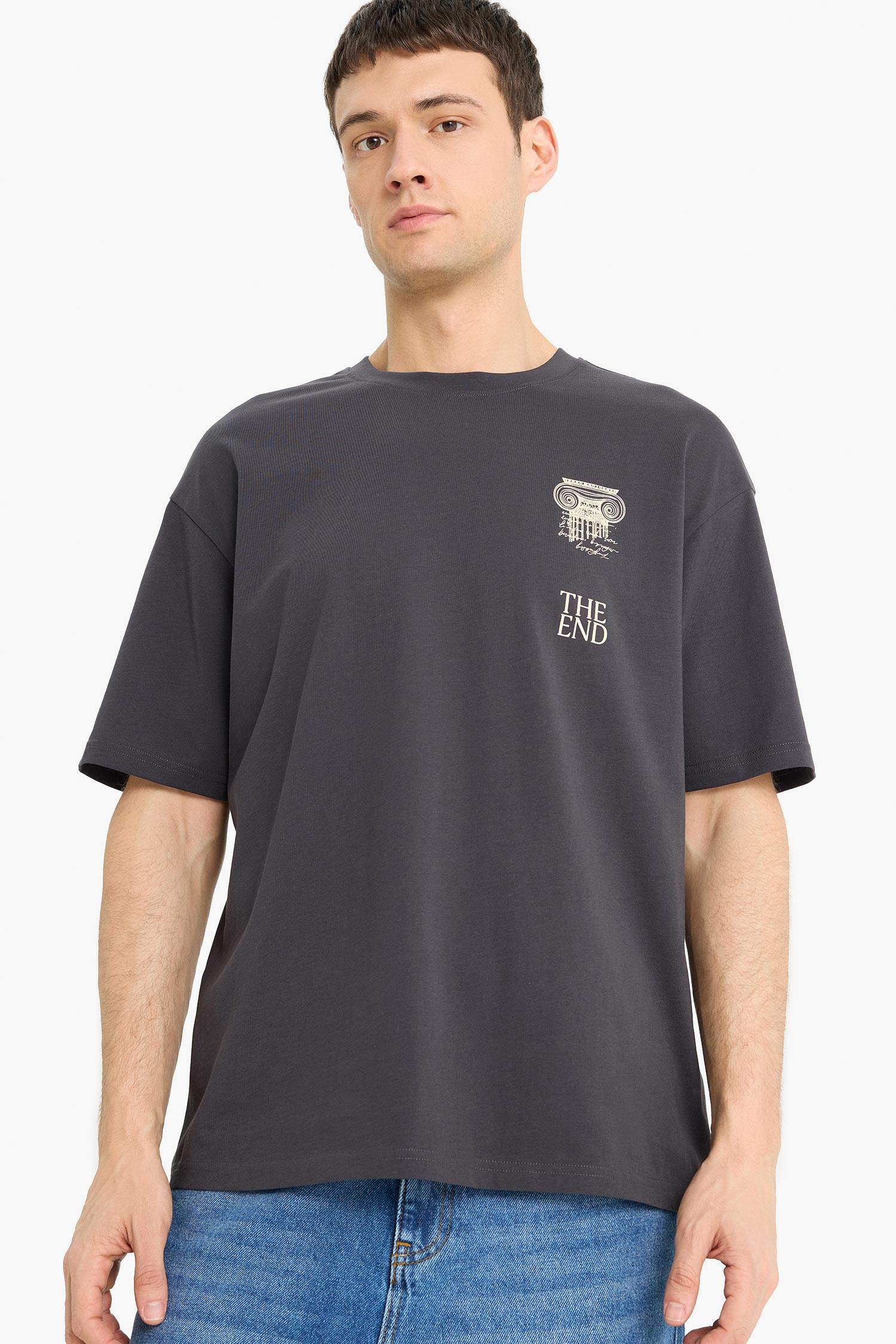 100% Cotton Boxy Fit Relaxed Cut Crew Neck Back Printed Short Sleeve T-Shirt