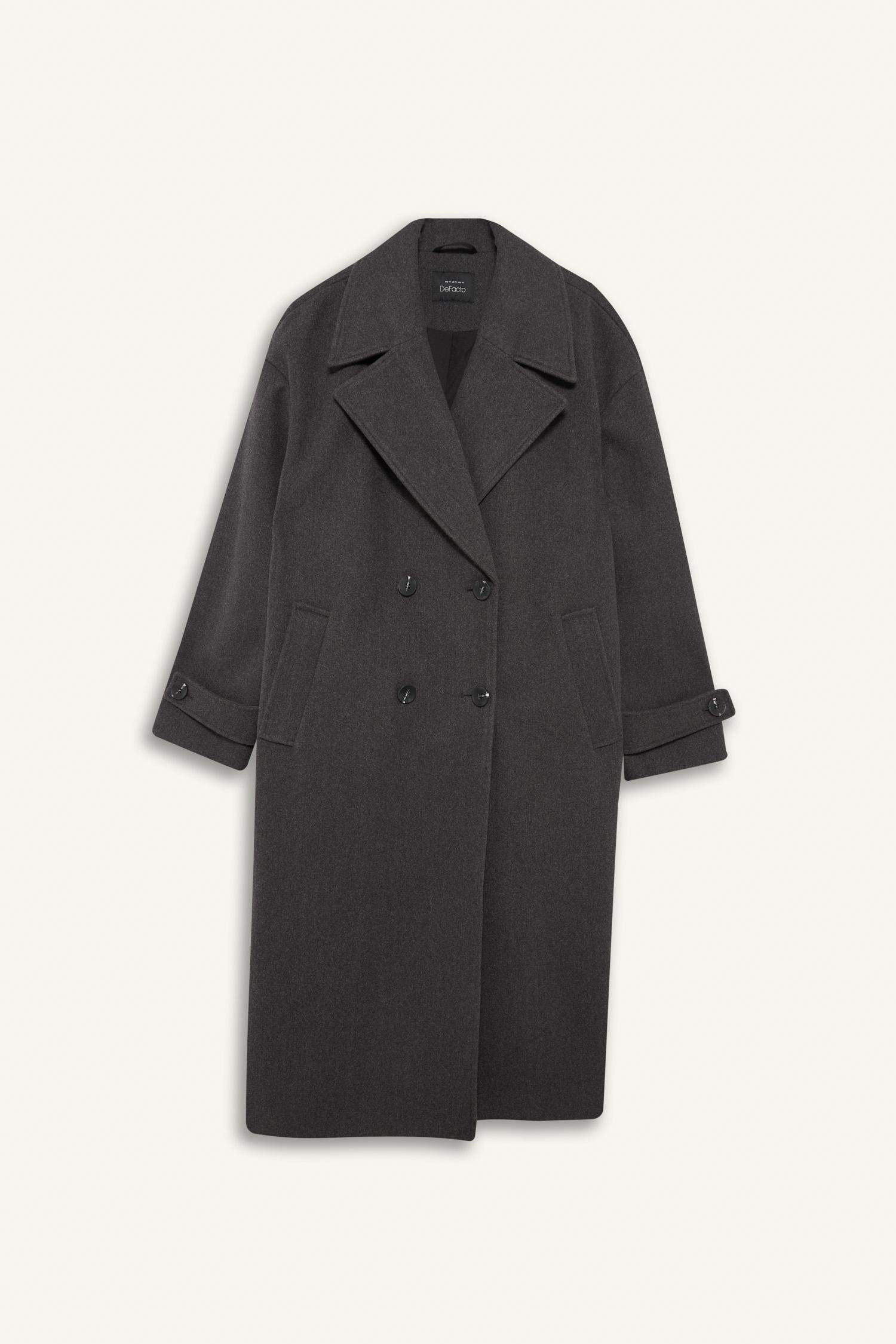 Regular Fit Buttoned Long Cashmere Coat
