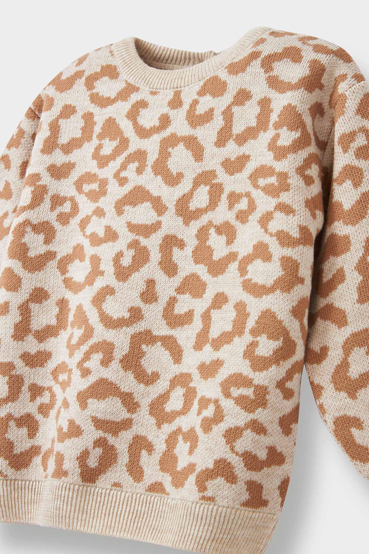 Baby Girl Crew Neck Leopard Patterned Knitwear Sweater
