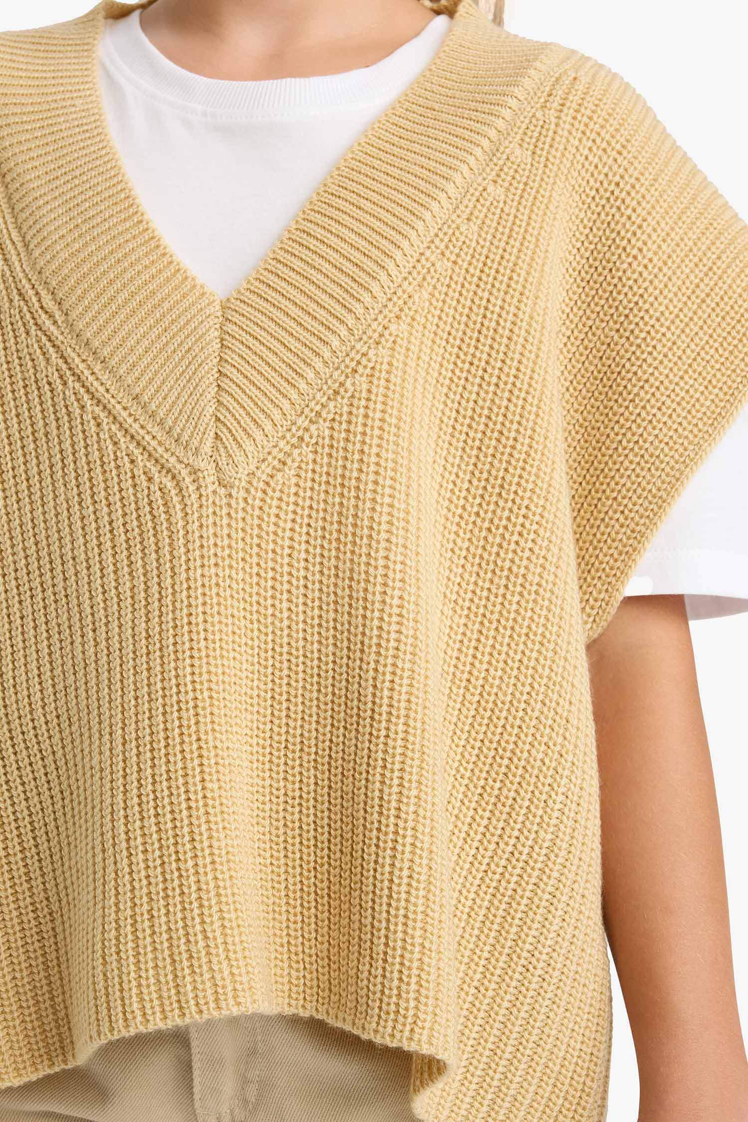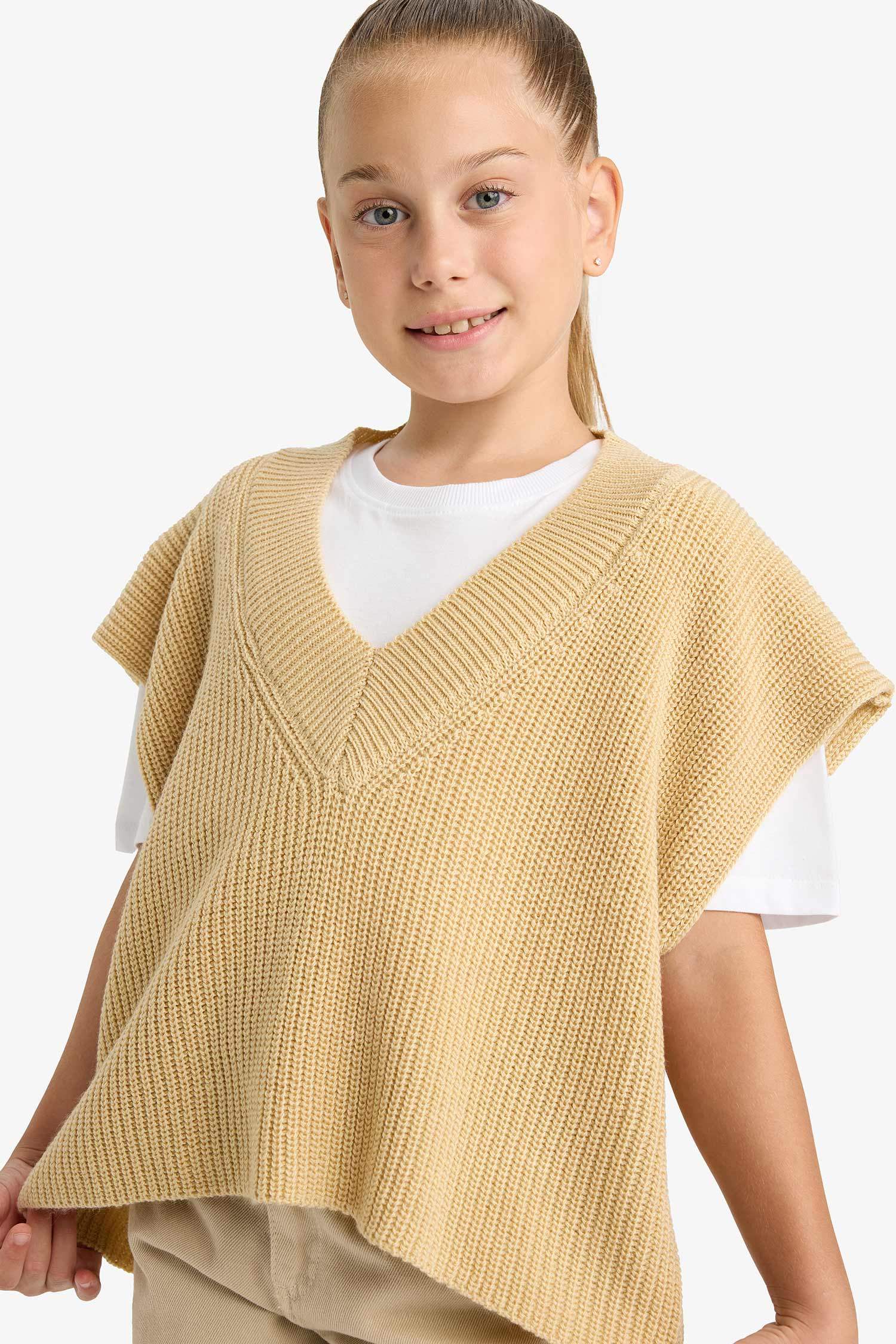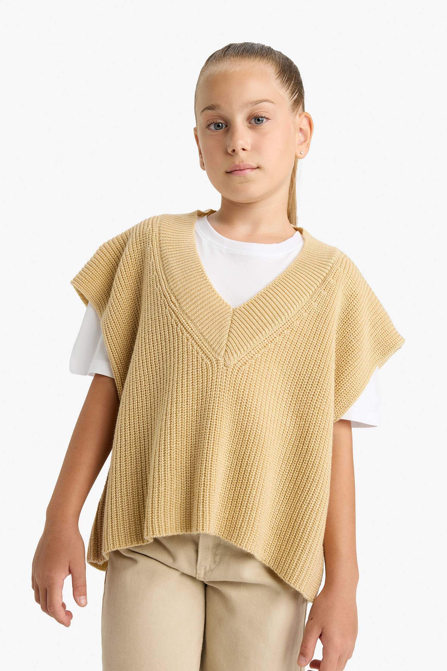 Girl's Oversize Wide Pattern V-Neck Knitted Sweater