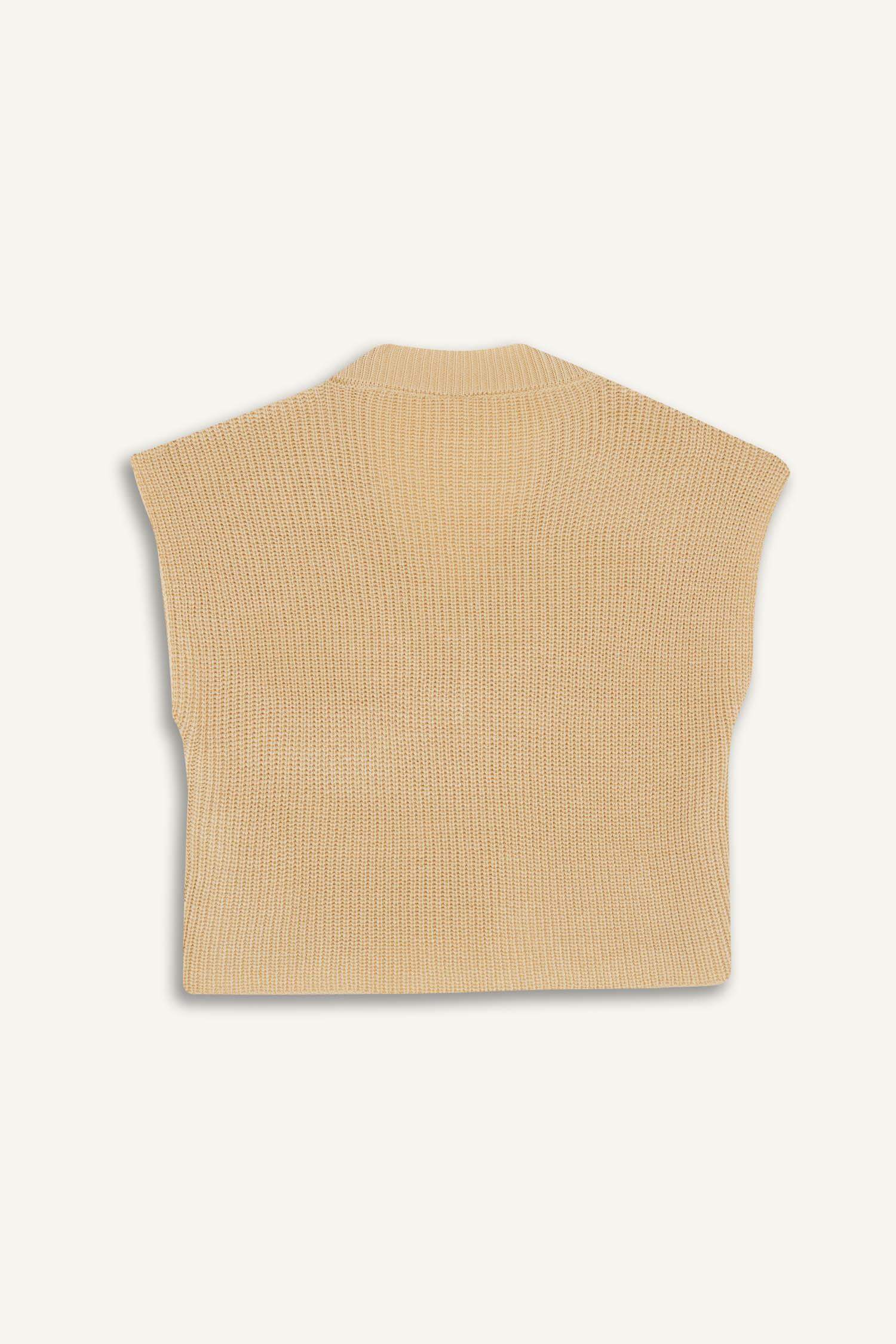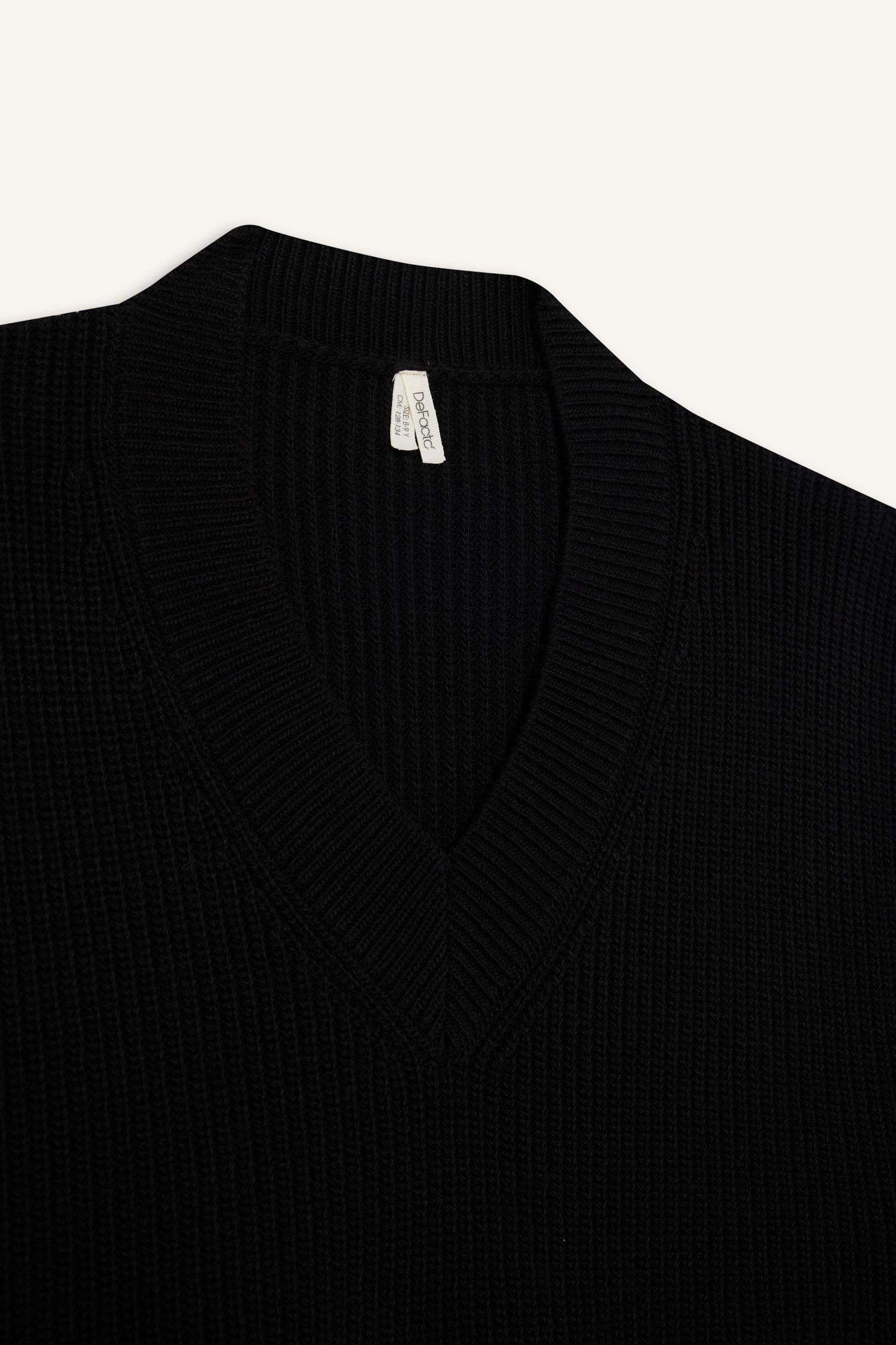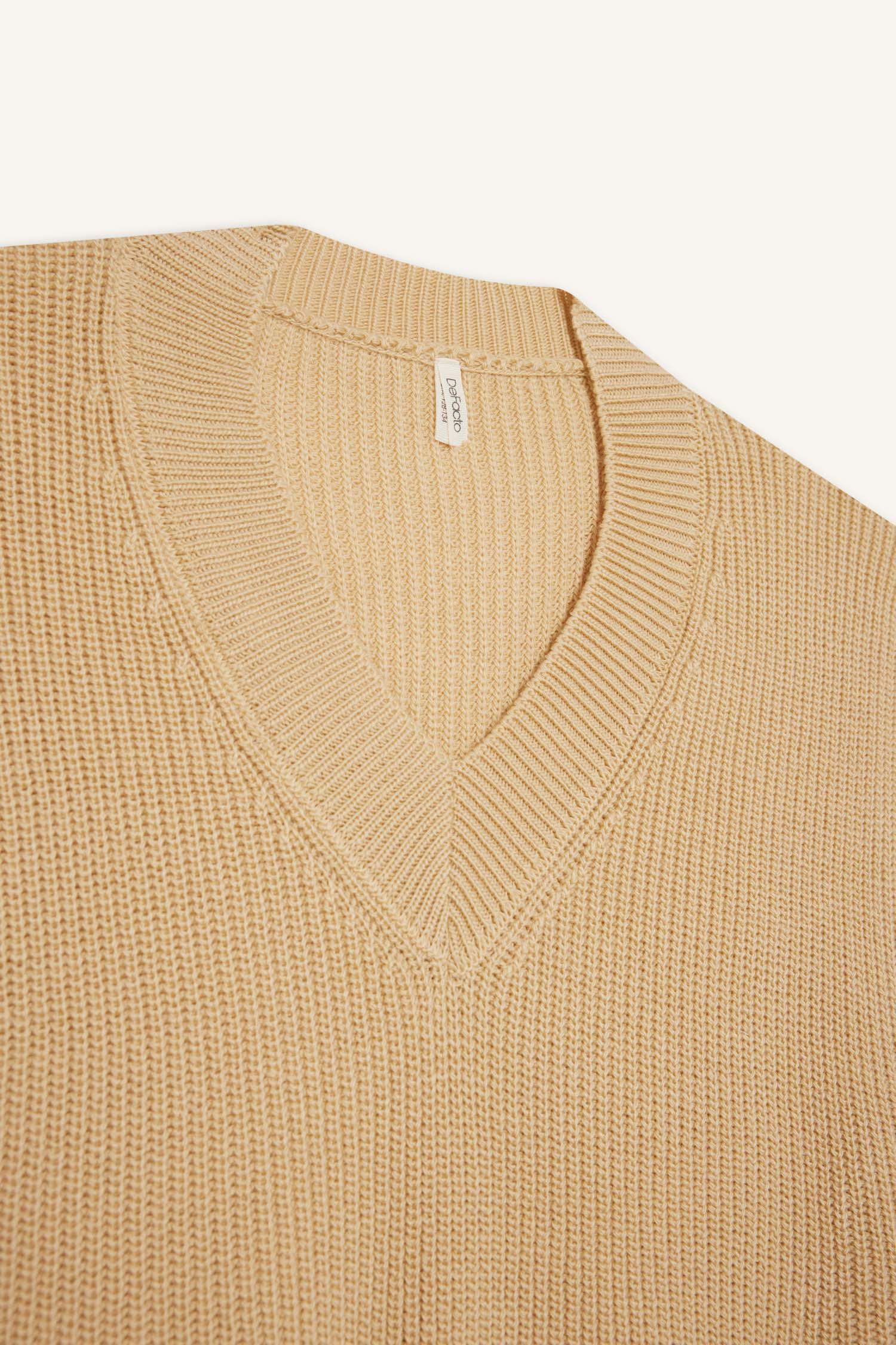 Girl's Oversize Wide Pattern V-Neck Knitted Sweater
