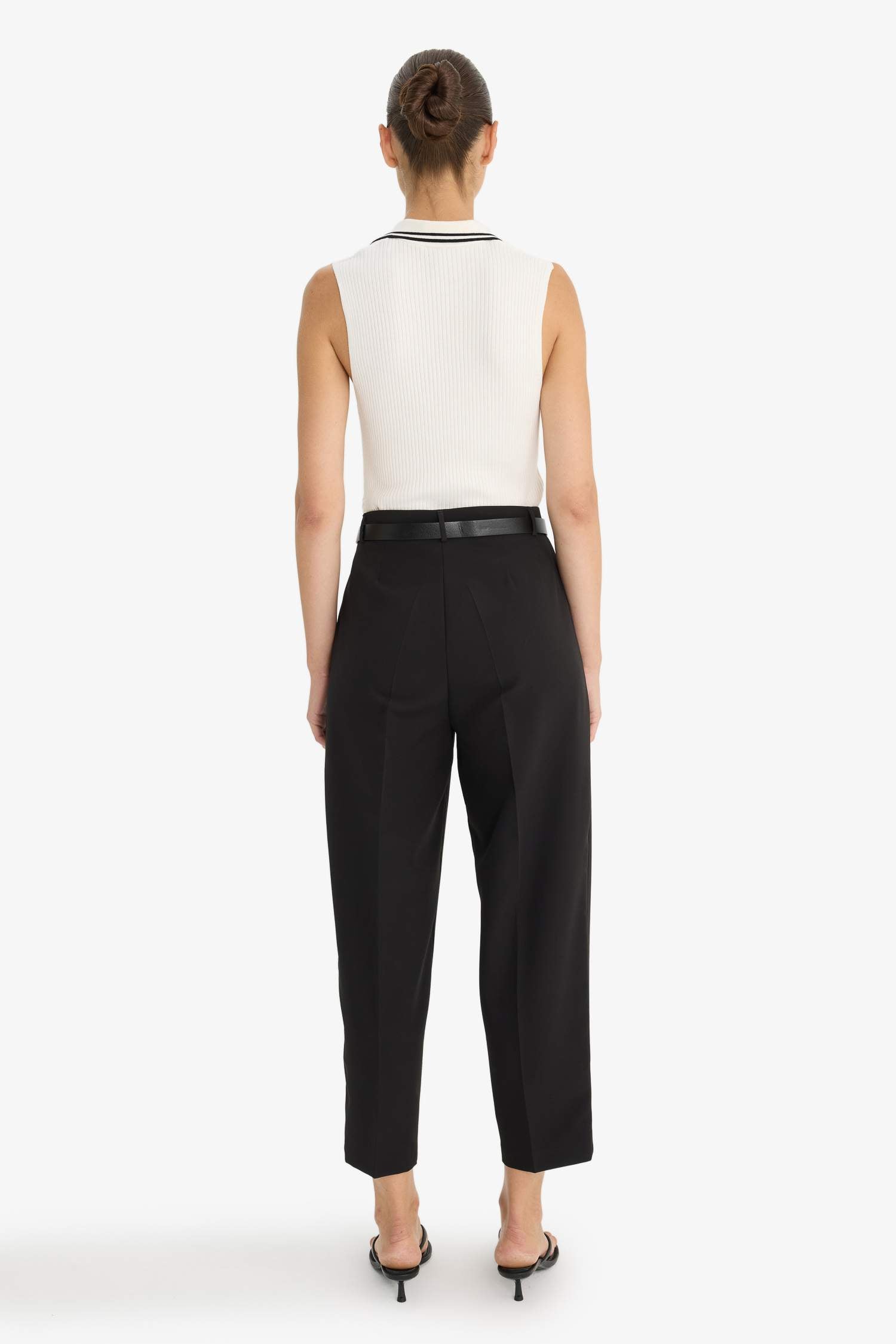 Carrot Fit Pocket Detailed High Waist Straight Leg Gabardine Trousers