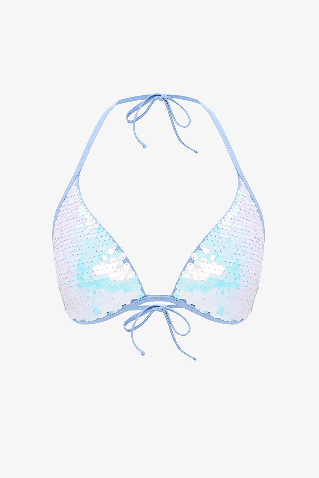 Sequin Sequined Blue Triangle Bikini Top - Gamze Erçel Collection