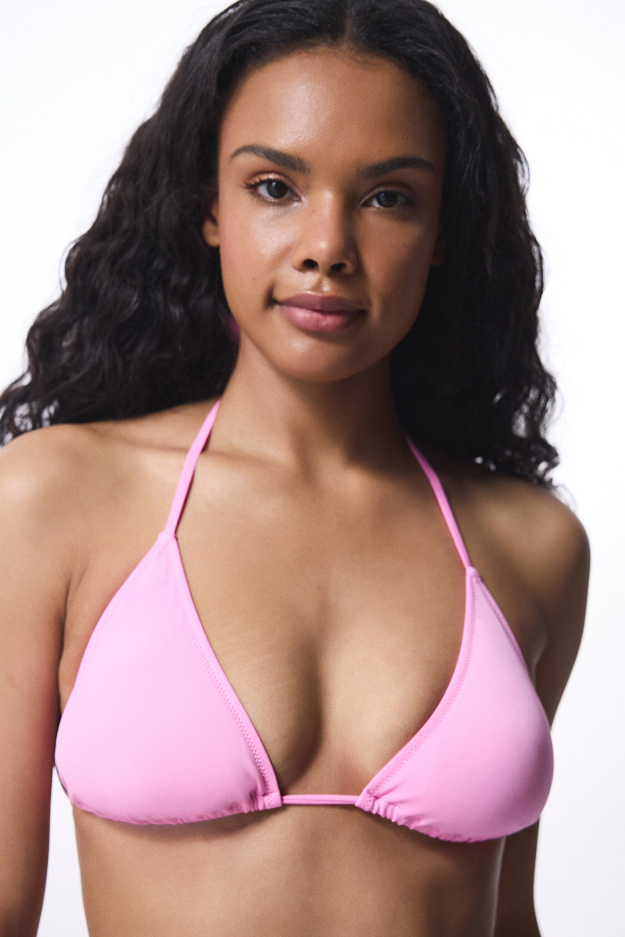Triangle Top can be easily combined with other pieces thanks to its solid color and is a bikini top that should be in every wardrobe. Its non-wired structure offers you comfort and convenience all day long. The straps tied at the neck allow you to adjust according to your personal preferences, while the back adjustment provides a perfect fit. It offers comfort and convenience thanks to its removable pads. Complete your beach style and add elegance to your wardrobe with this functional and comfortable bikini top! Buy now and enjoy summer!