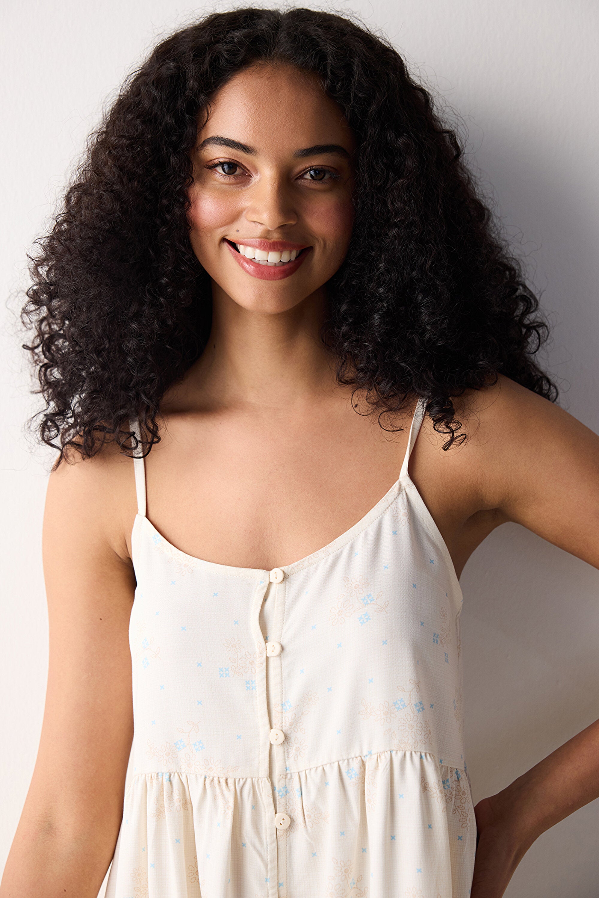 Floral Buttoned White Dress