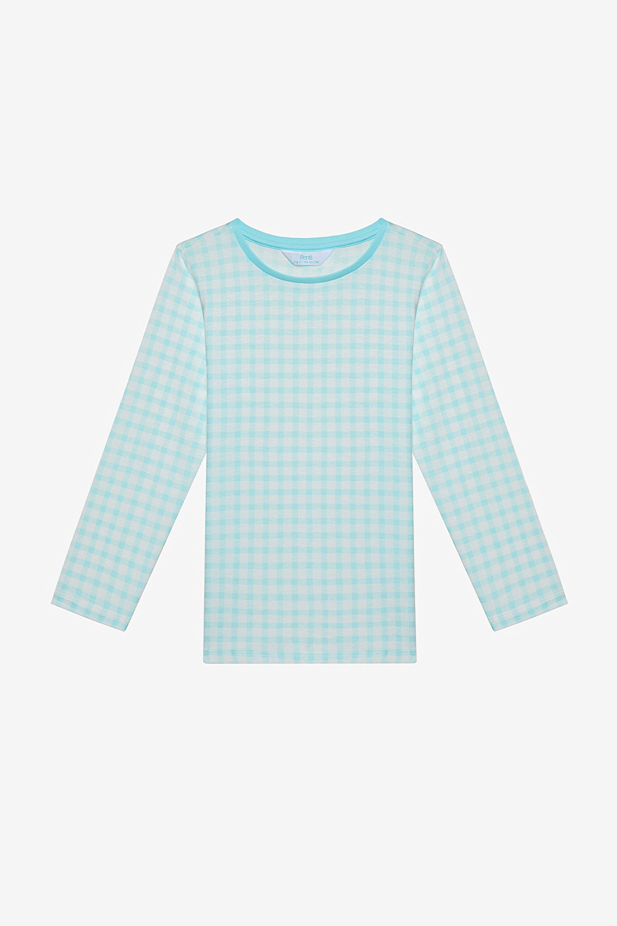 Bow Ck Ls-Ss 2-Piece Pajama Set is designed for girls' comfort. It offers a peaceful sleep experience every night thanks to its comfortable fabric. The blue lines on the white background in the first pajama set add a modern and stylish look. The plain blue second pajama set provides a sweet touch with the elegant ribbon figure on the collar. This set is ideal for those looking for a comfortable and stylish home wear option. Buy this special pajama set now for your daughter to sleep comfortably and stylishly!Material