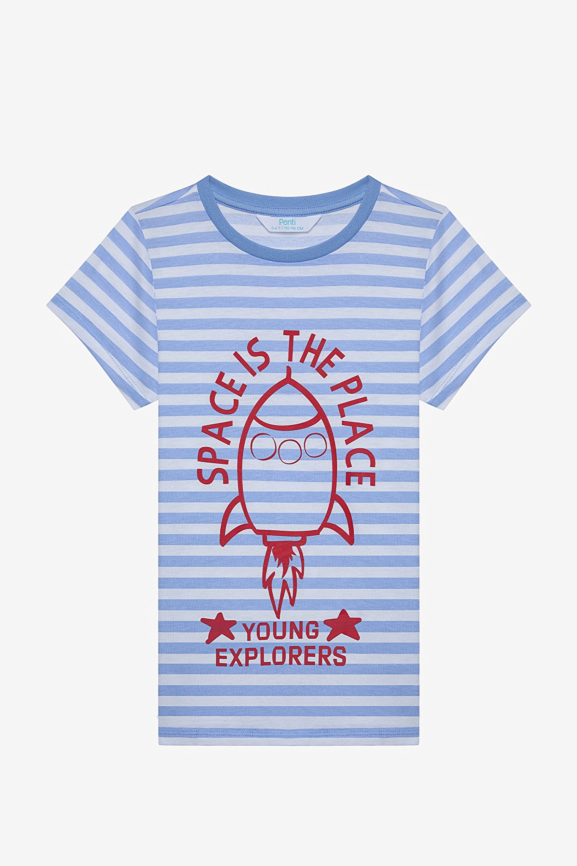 Space Boy Ss ss 2-Piece Pj Set offers a homewear option that stimulates the imagination of little astronauts. Designed for boys, this 2-piece short-sleeved pajama set offers the perfect combination of comfort and style. The blue background color of the first pajama set is enlivened with white lines and completed with stylish red writing. This design offers an energetic and dynamic look. The second pajama set creates a spacious feeling with white and blue background colors. The white lines on the bottom add a simple and stylish touch. Space Boy Ss ss 2-Piece Pj Set makes children's bedtime fun and comfortable. Buy now to add color to your child's dream world with this pajama set!Material