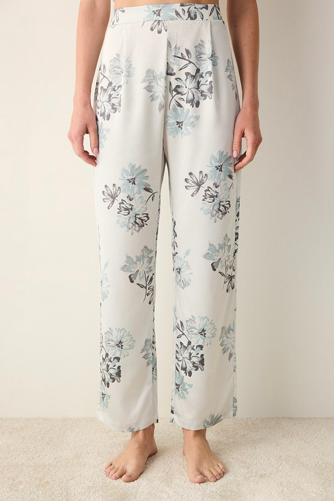 Camille Satin Light Grey Trousers Pajama Bottoms