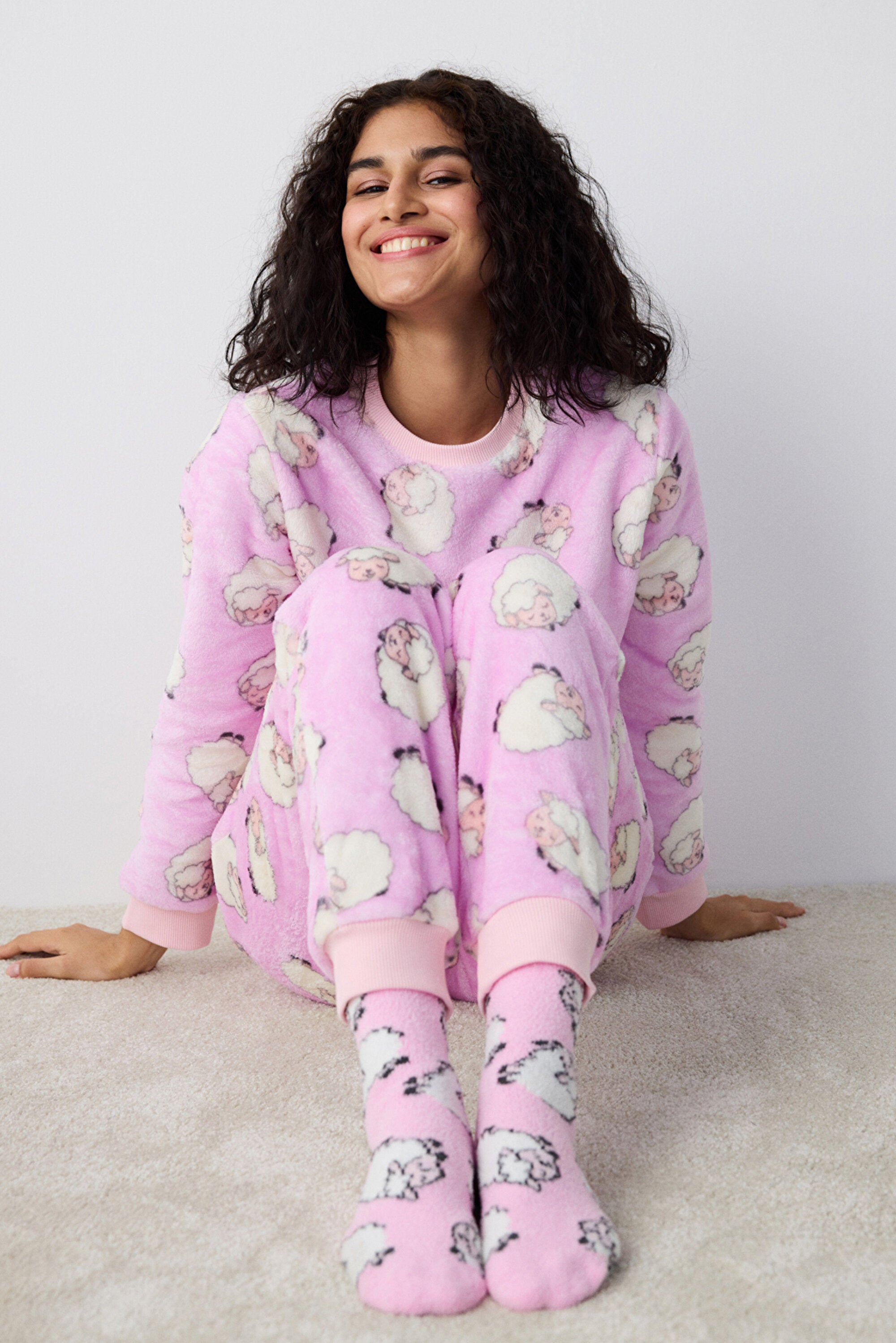 Cute Sheeps Lilac Pants Pajama Set