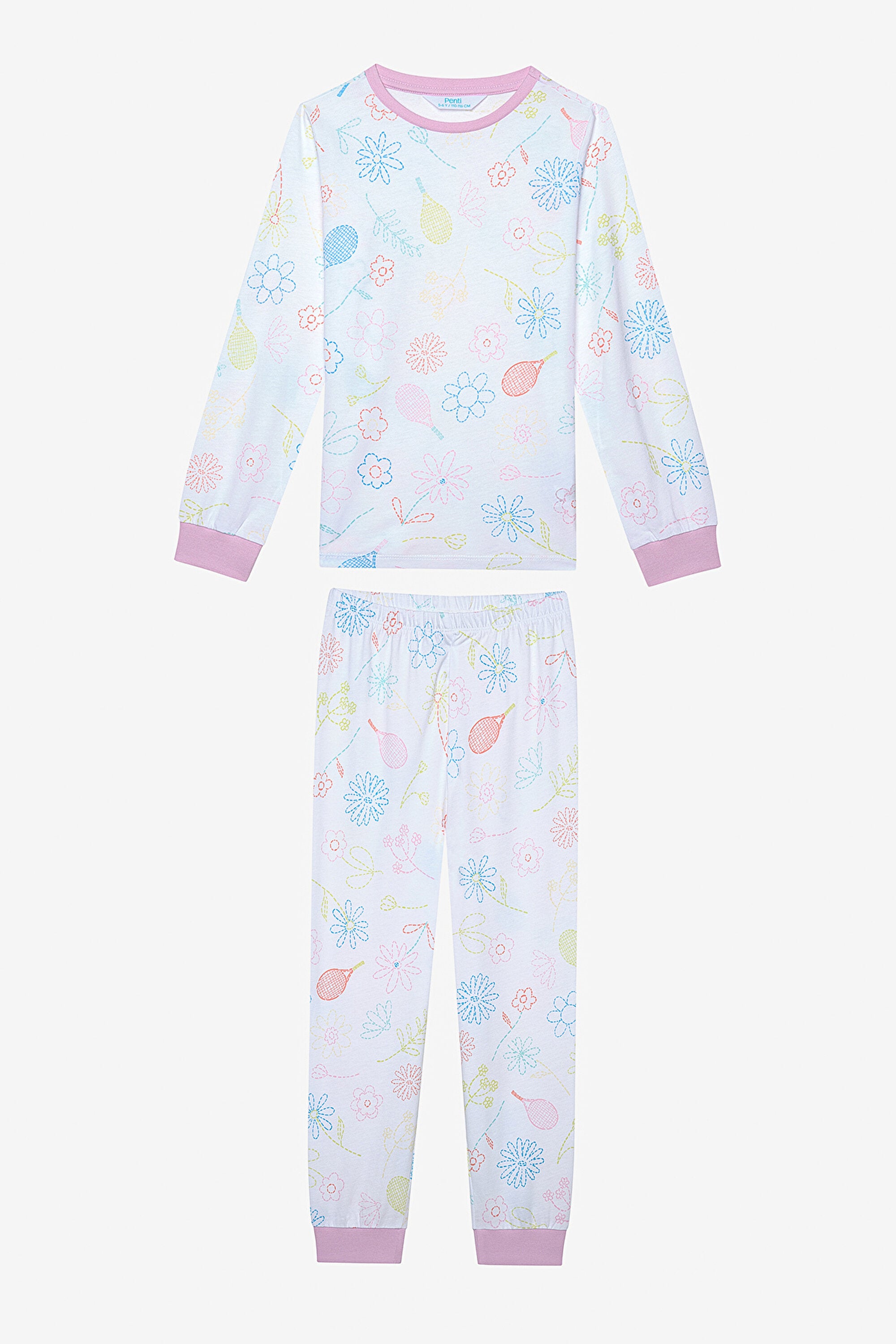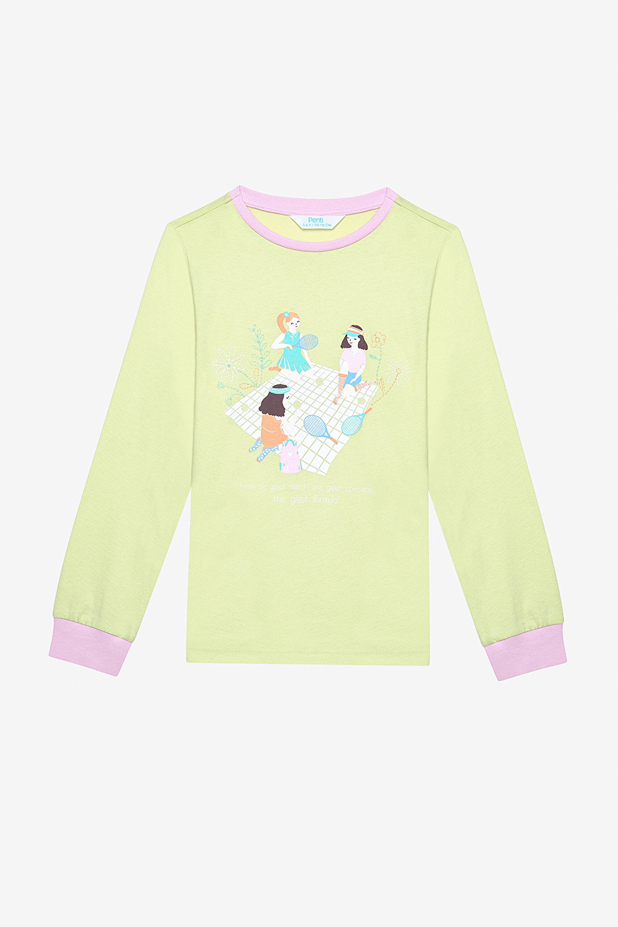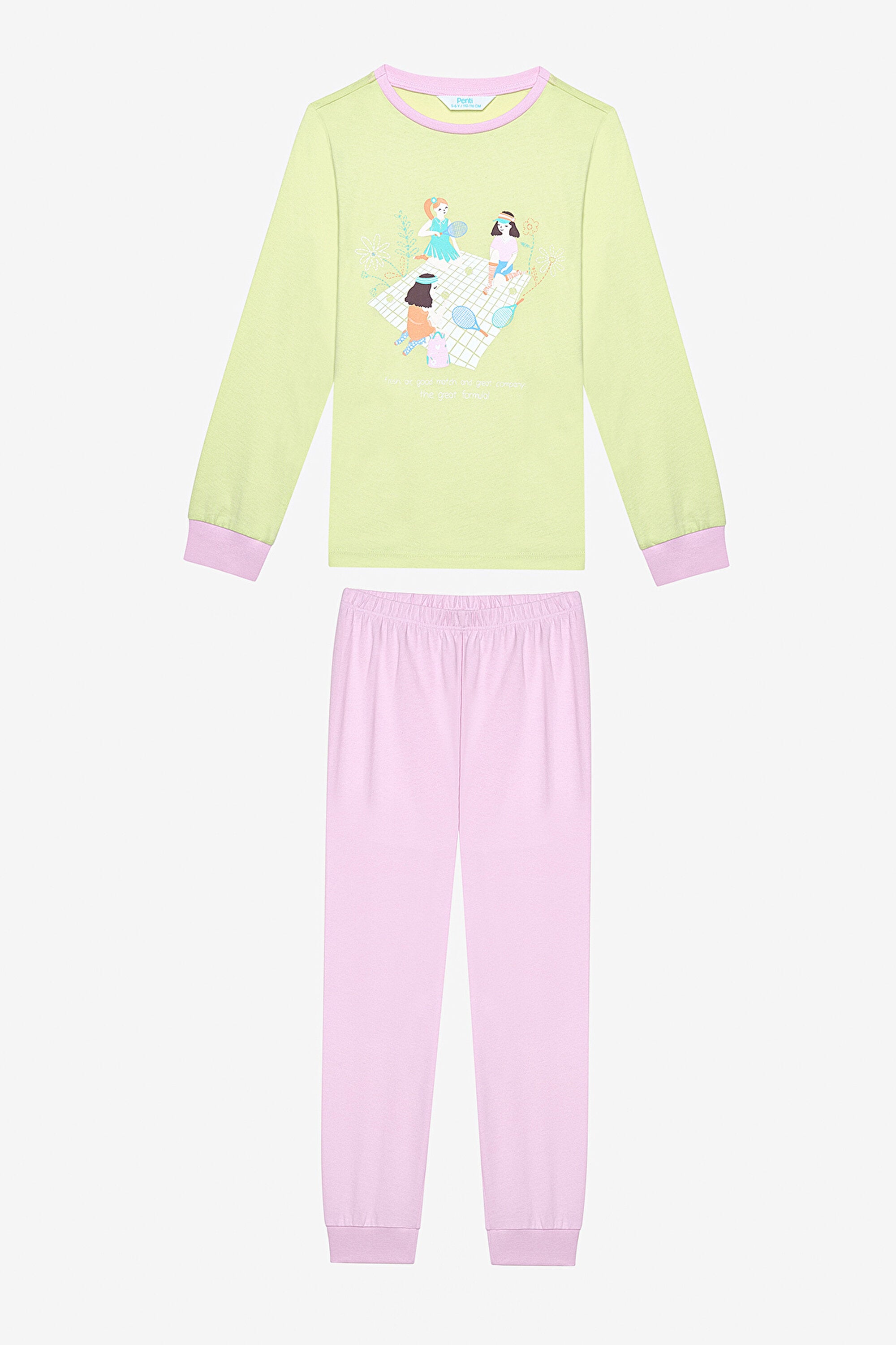 Cotton Girls Tennis Picnic 2-Piece Multicolored Pajama Set