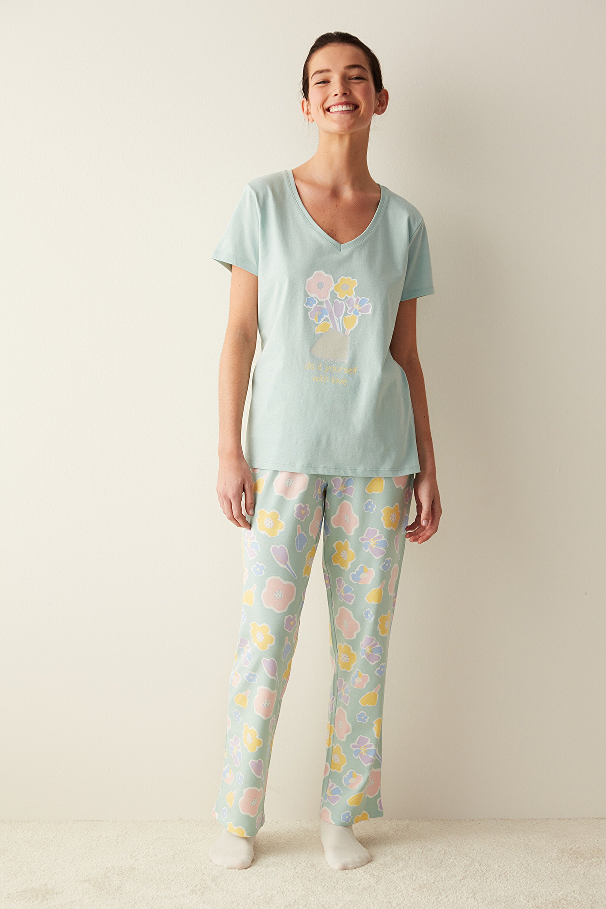 With Love Ss Trouser Set has a fun and lively design. It also stands out with its more economical price than other group products. This suit, which is indispensable for those looking for fun in home wear with its patterns, is both stylish and comfortable. It is also a sustainable product. It is produced using cotton produced through a production process that respects people, the environment and nature. With Love Ss Trouser Set is an ideal choice for those looking for an option that is both fun and sustainable.