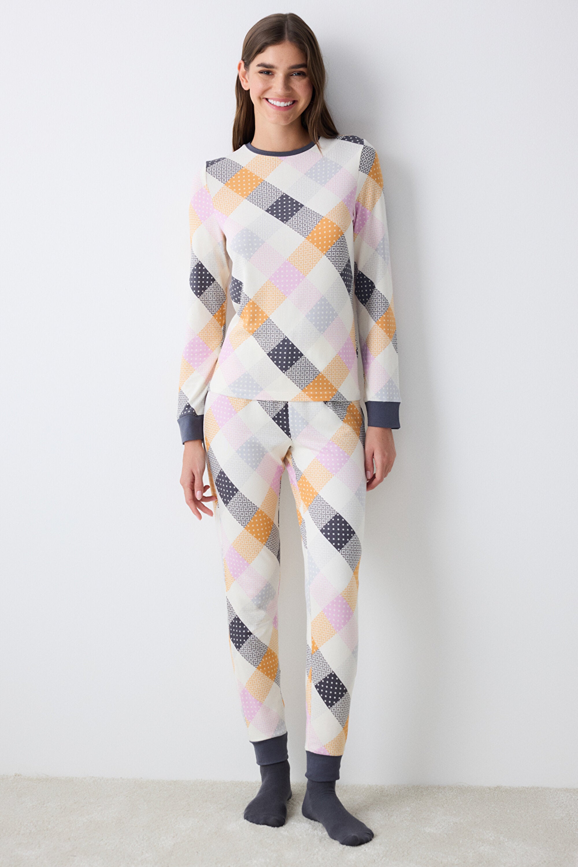 Colorful Gingham Thermal Multicoloured T-Shirt Pajama Top
