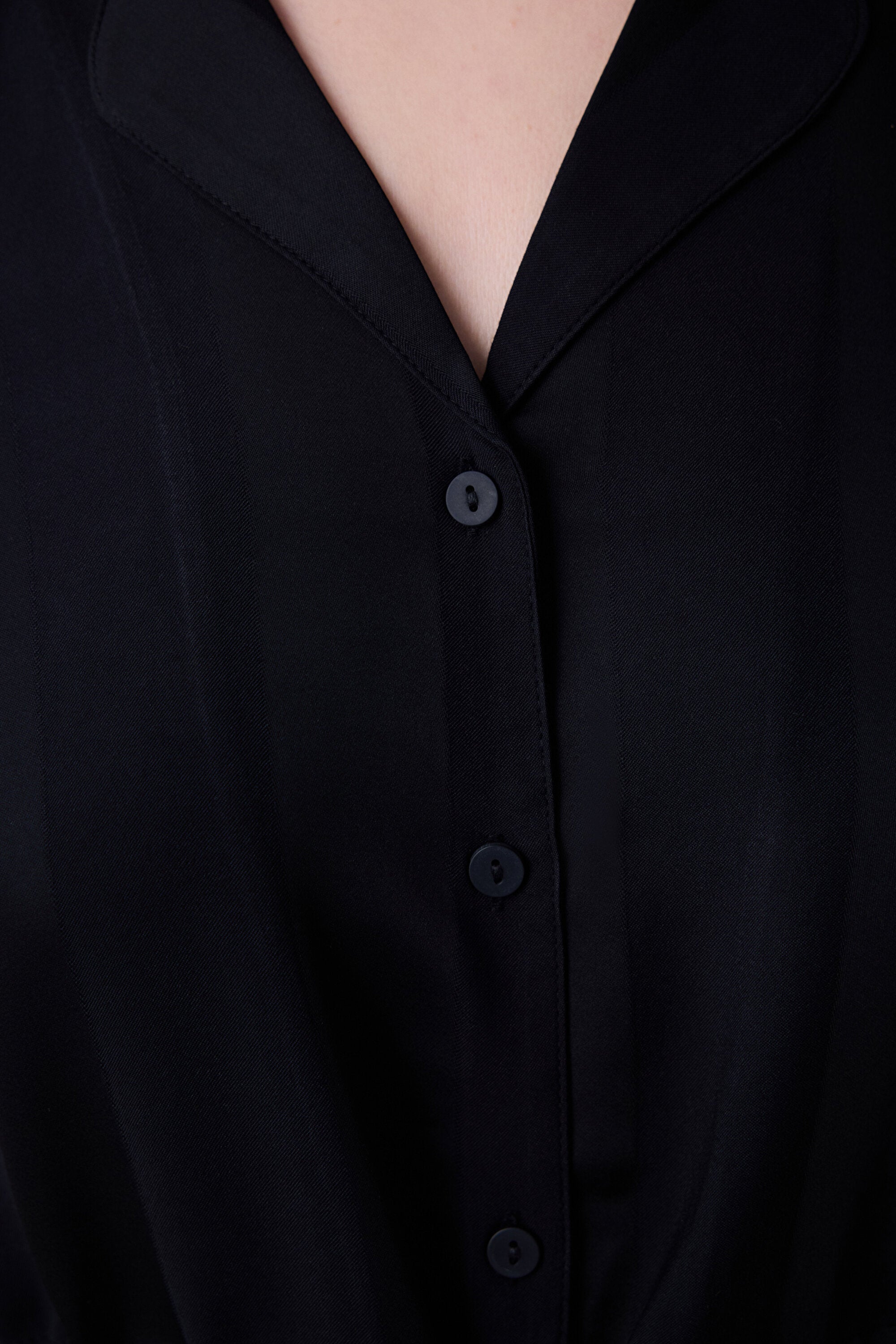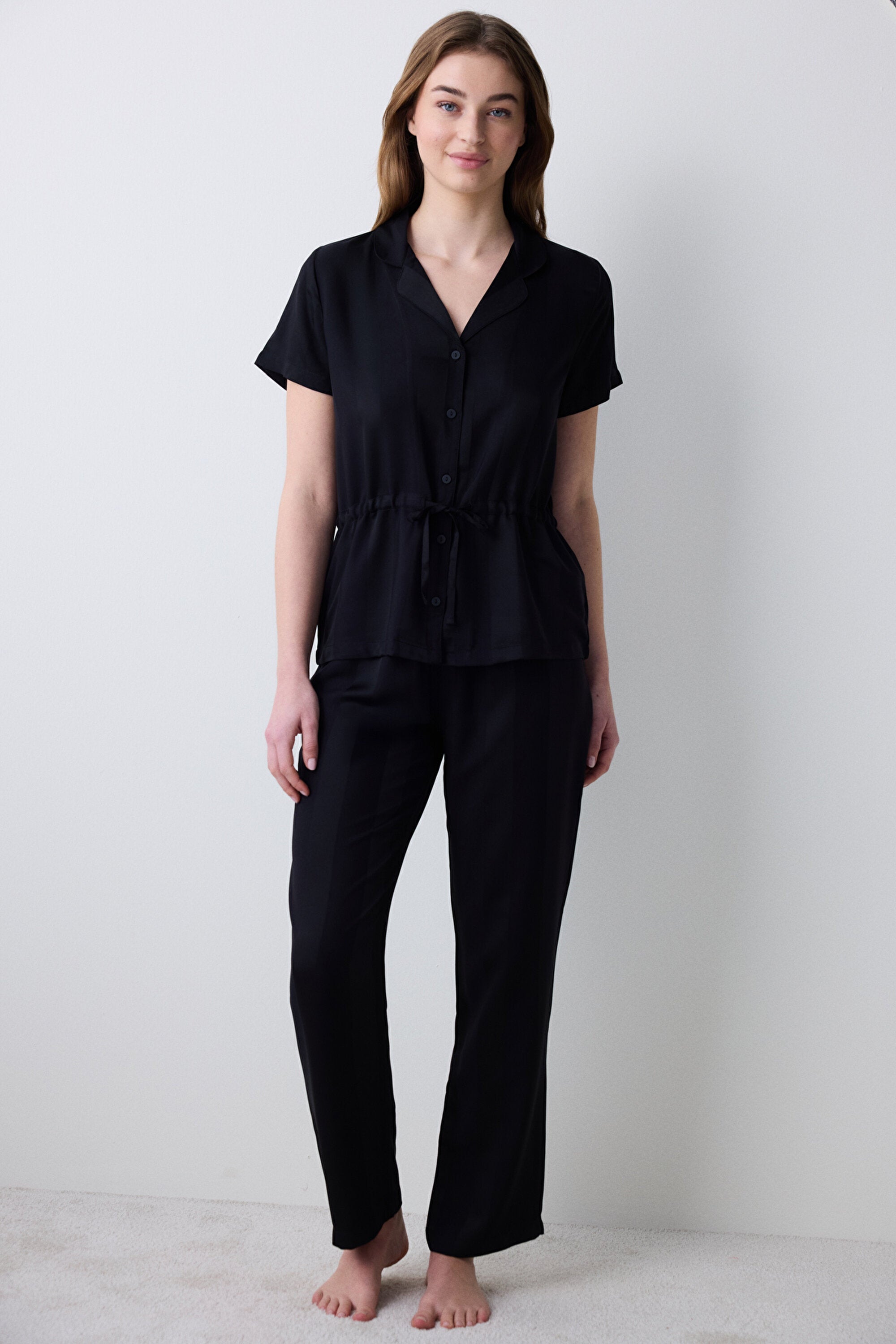 Fleur Satin Shirt Pants Black Pajama Set - Penti Loves Paris Collection