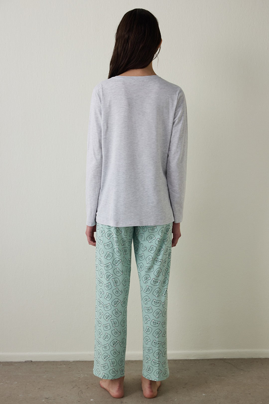 The Weekend Mood LS Trouser Set is made from human-friendly and environmentally friendly cotton. It's a pajama set sold as a set. Its lightweight texture is gentle on the skin, while its comfortable fit allows for freedom of movement. Its colorful pattern adds a vibrant touch to your home style. Enjoy comfort at home, whether you're daytime or sleeping! Add to cart now to make your time at home even more comfortable.