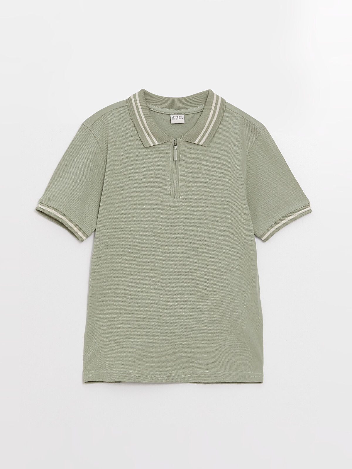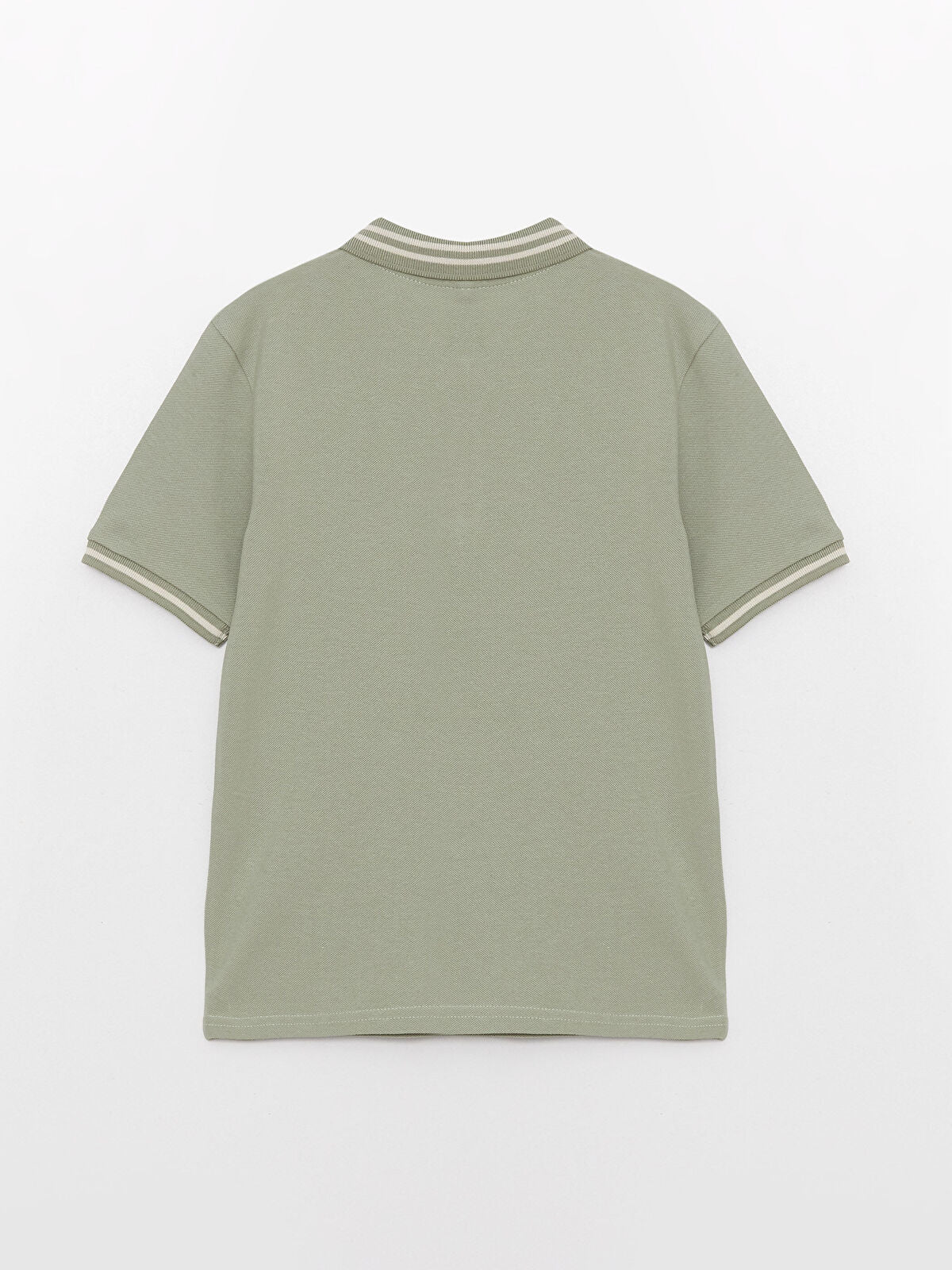 تي شيرت ولادي بيزك بأكمام قصيرة باللون الأخضر مع ياقة بولو