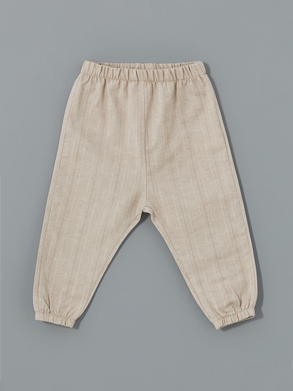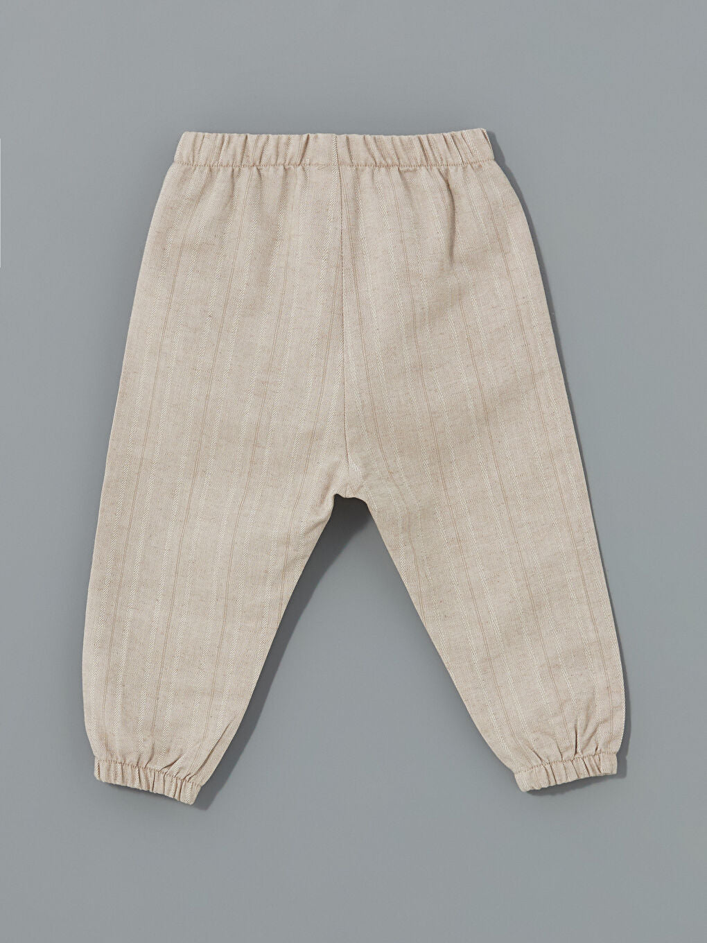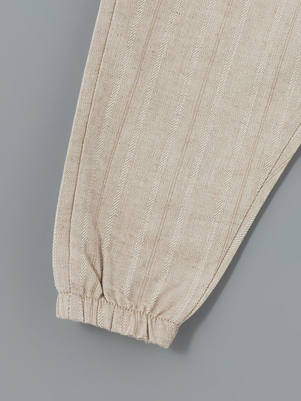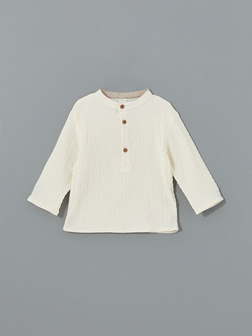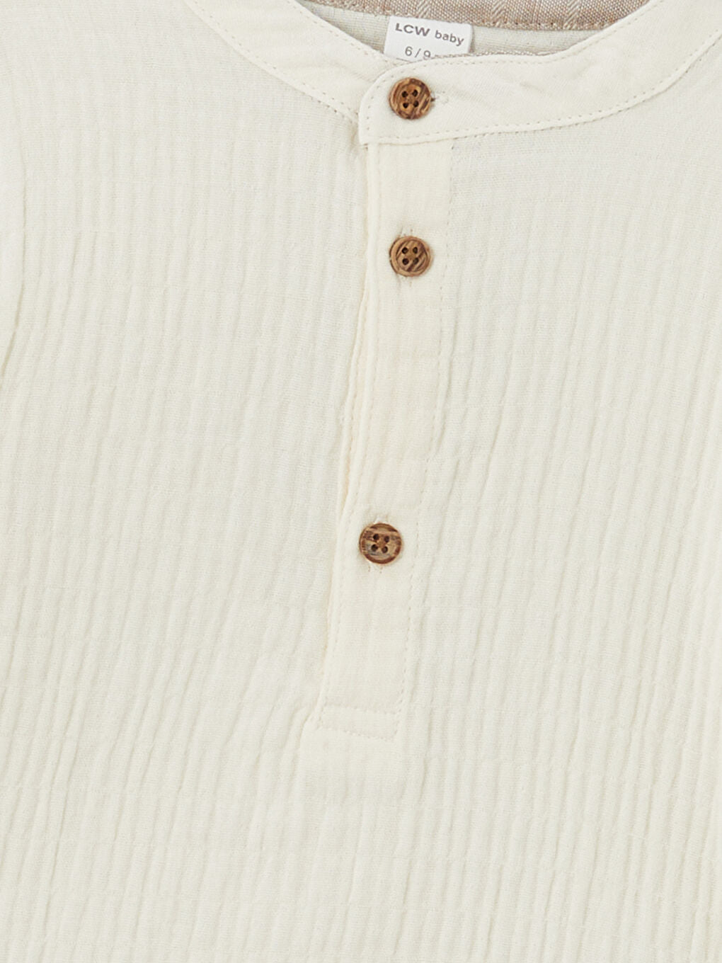 LCW baby Ecru Mandarin Collar Baby Boy T-Shirt and Pants 2-Pack