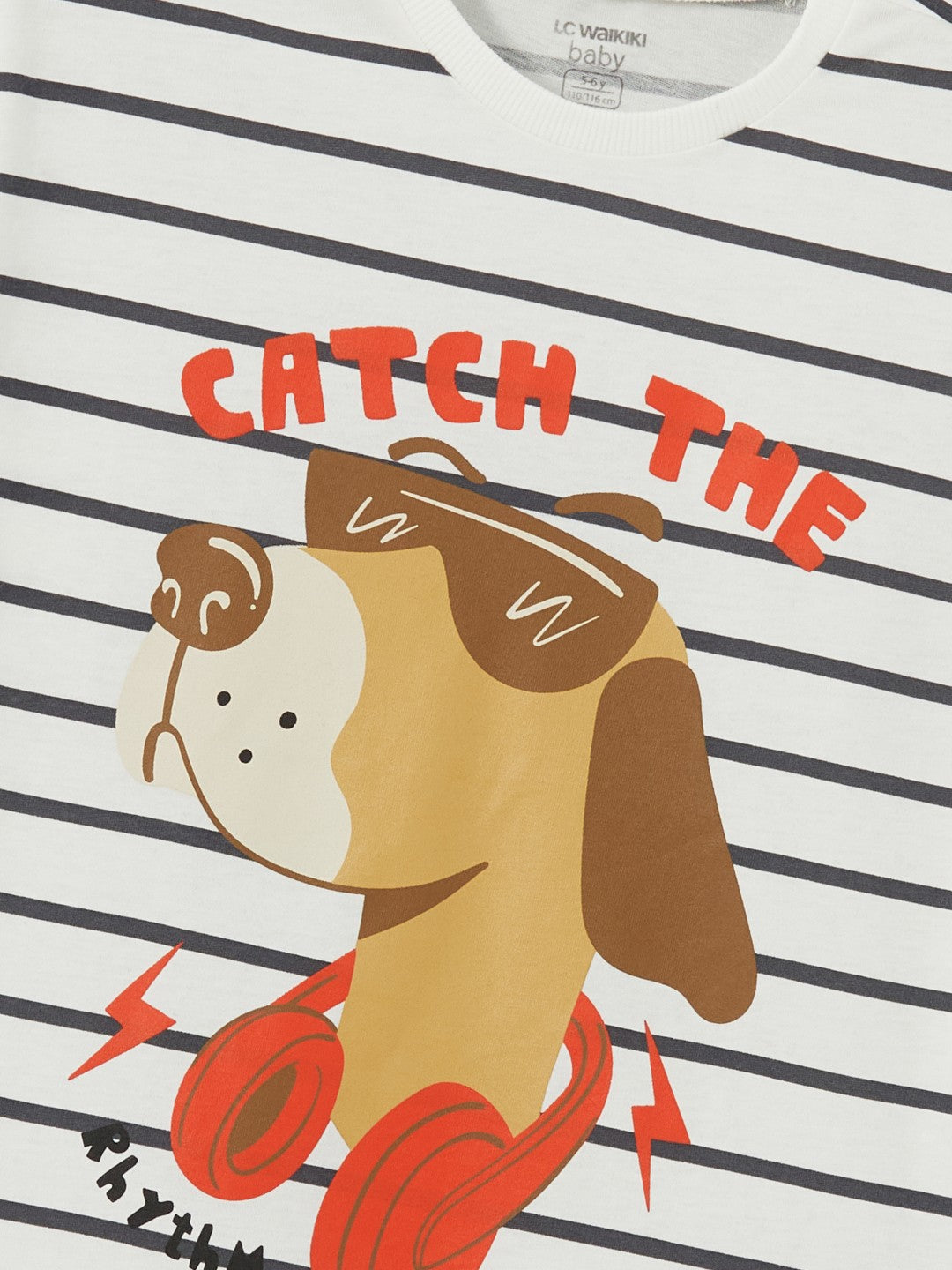 Offering comfort all day long with its soft cotton combed fabric, the set has a crew neck print and striped details. It is ideal for both playtime and daily combinations with its stylish and comfortable design.