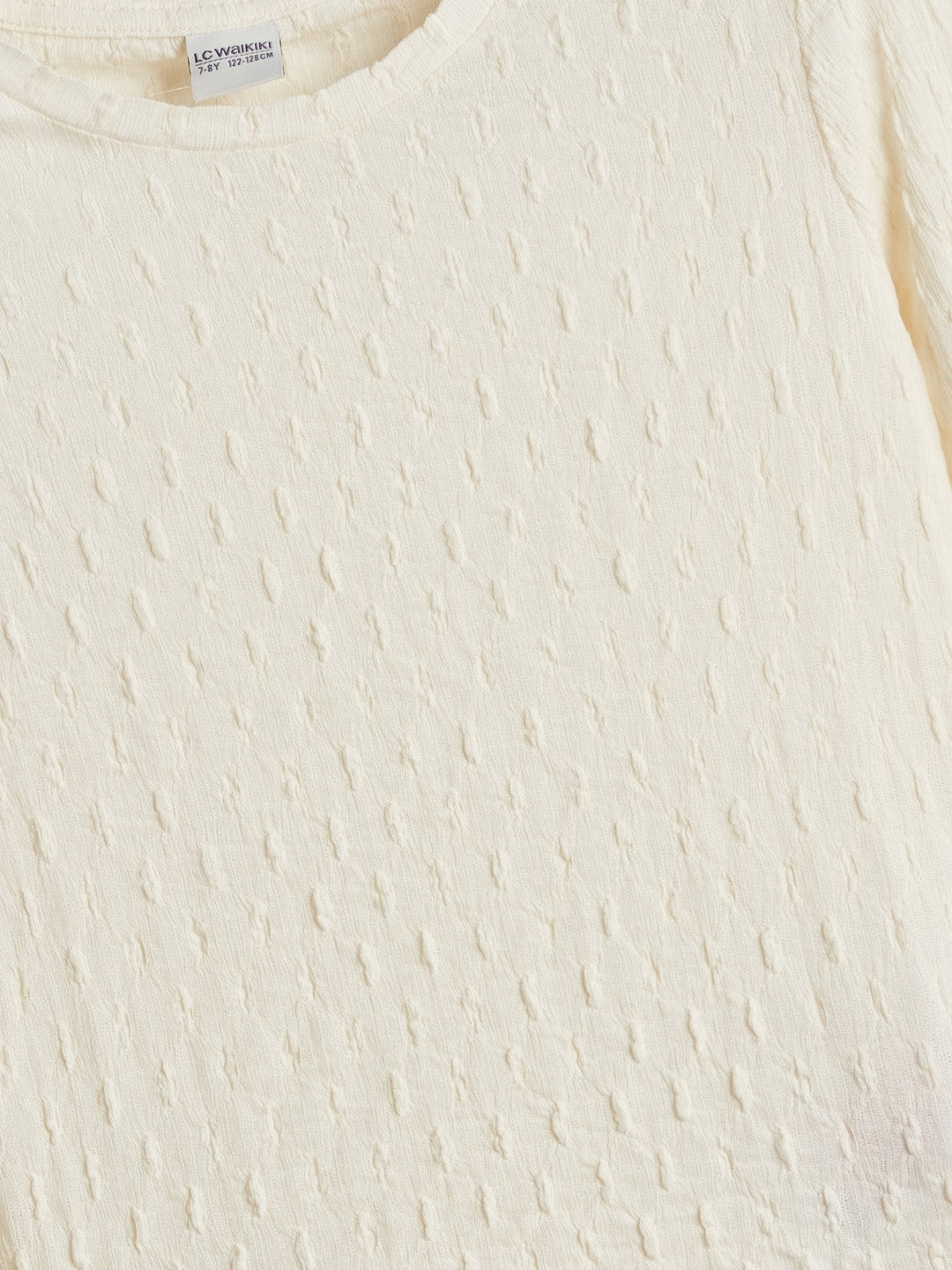 LCW Kids Crew Neck Textured Girls Crop T-Shirt