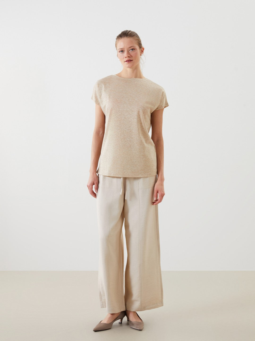 LCW Classic Stand Collar Shiny Look Women T-Shirt