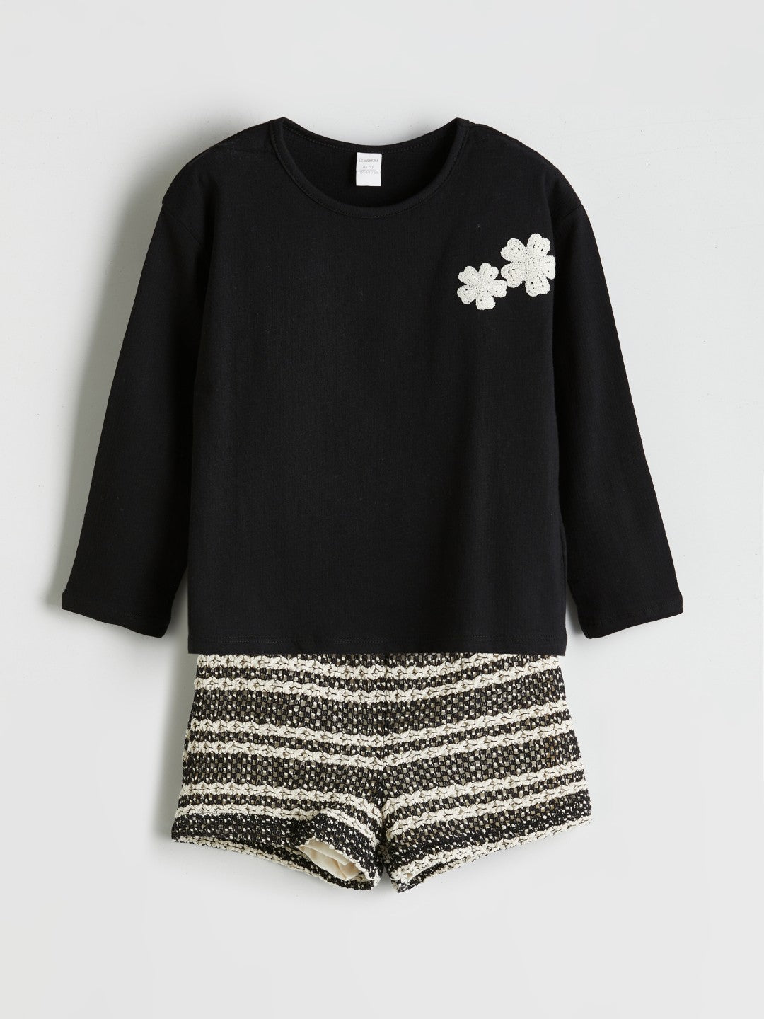 Floral girls crinkle blouse and shorts 2-piece set reflects the energy of summer with its natural crinkle fabric and colorful floral prints. It offers comfortable use in hot weather with its comfortable and lightweight structure.