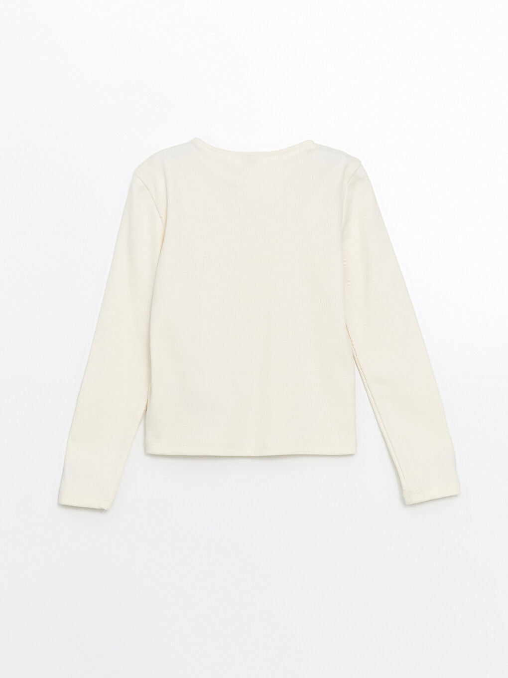 LCW Kids Ecru Crew Neck Bow Detailed Girls Crop T-Shirt