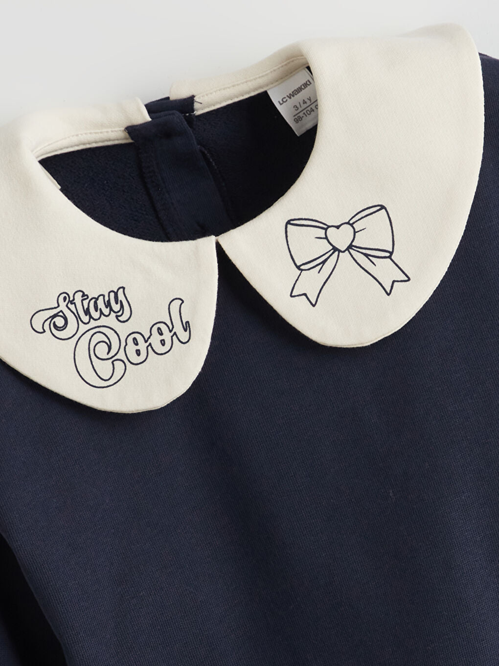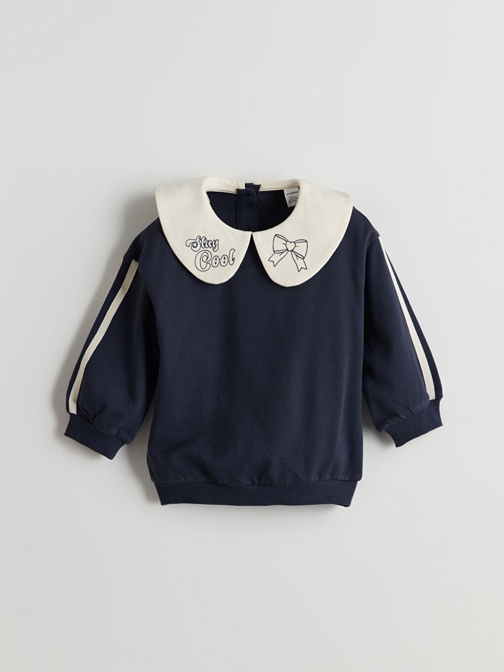 LCW Kids Navy Blue Baby Collar Ribbon Detailed Girls Sweatshirt