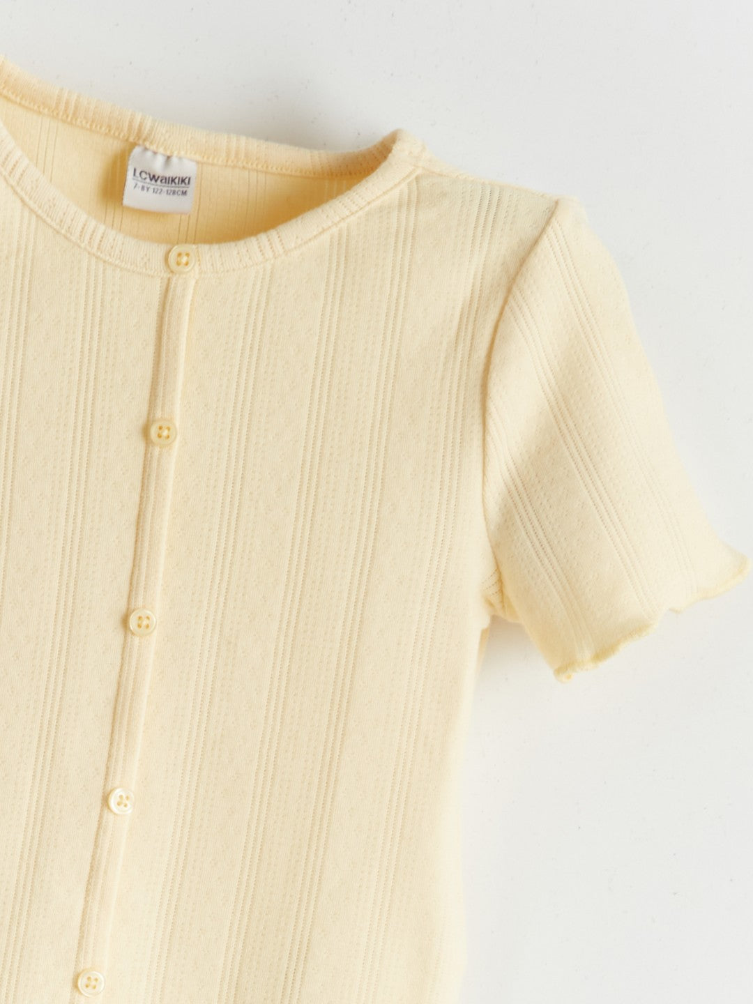Providing comfort all day long with its flexible cotton fabric, the short-sleeved t-shirt offers an elegant look with its button details.