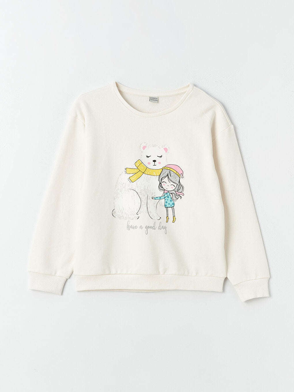 Produced from 2-thread rose fabric, the girl's sweatshirt attracts attention with its cute print. Ribbed details on the cuffs and hem provide a comfortable fit. Your child will have a stylish and comfortable style with this sweatshirt.