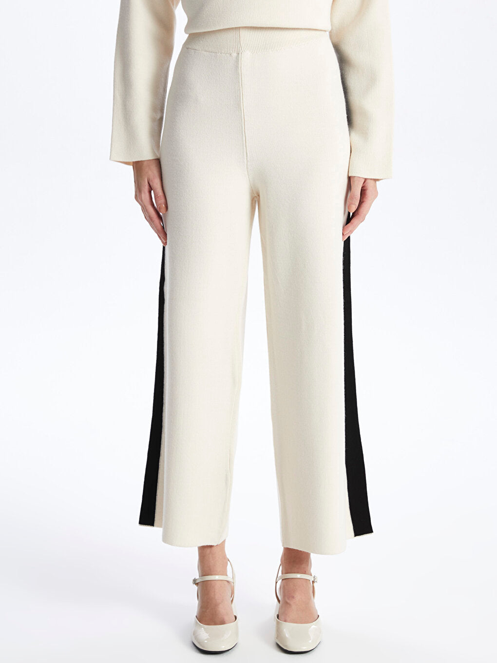 بنطلون تريكو نسائي مع خطوط على الخصر