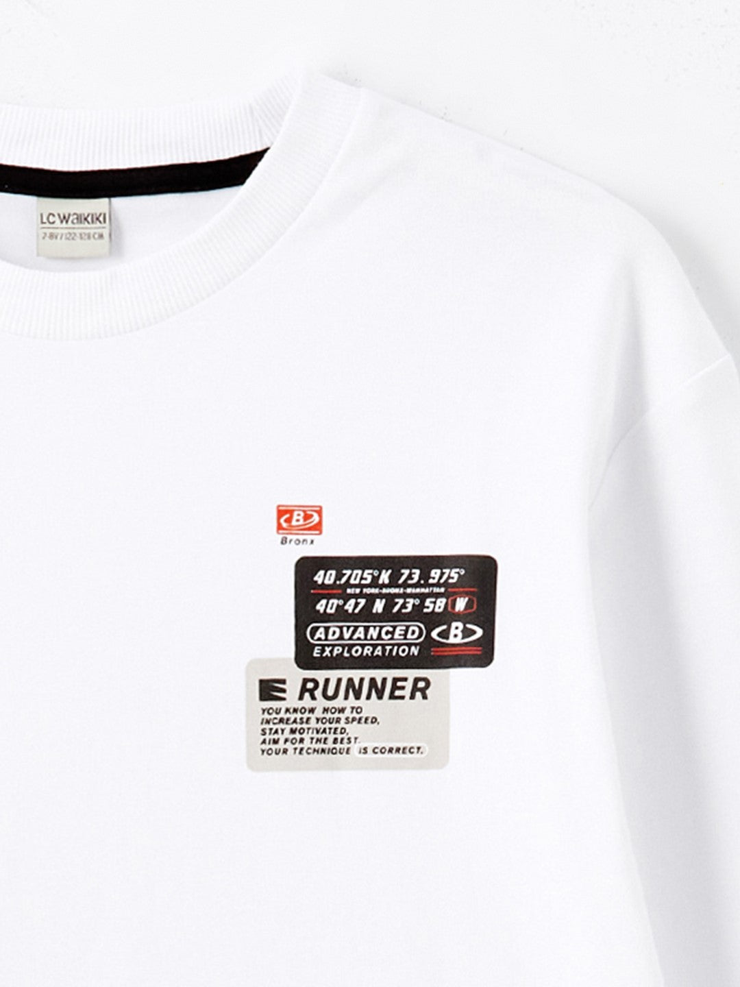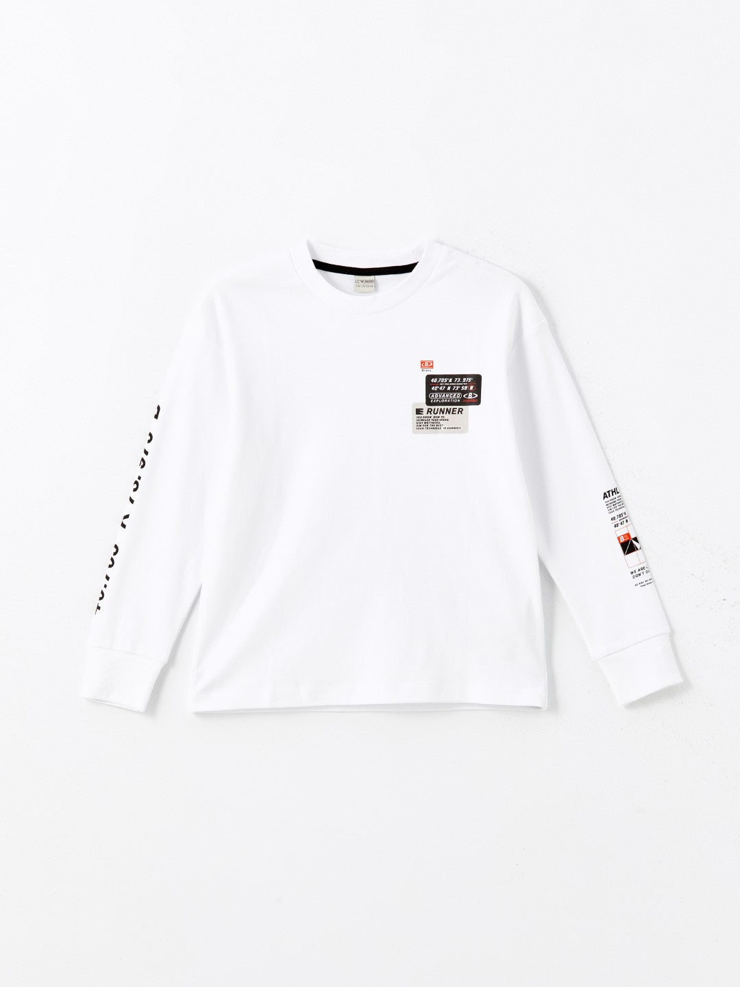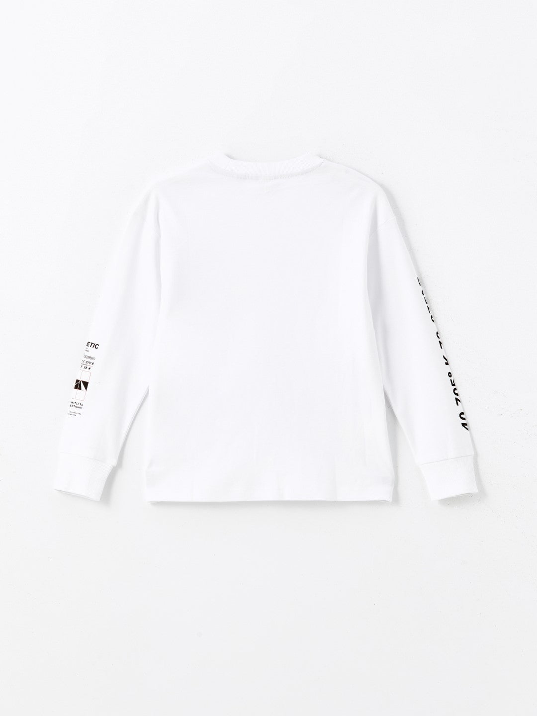 LCW Kids Buxe White Crew Neck Long Sleeve Printed Boy T-Shirt