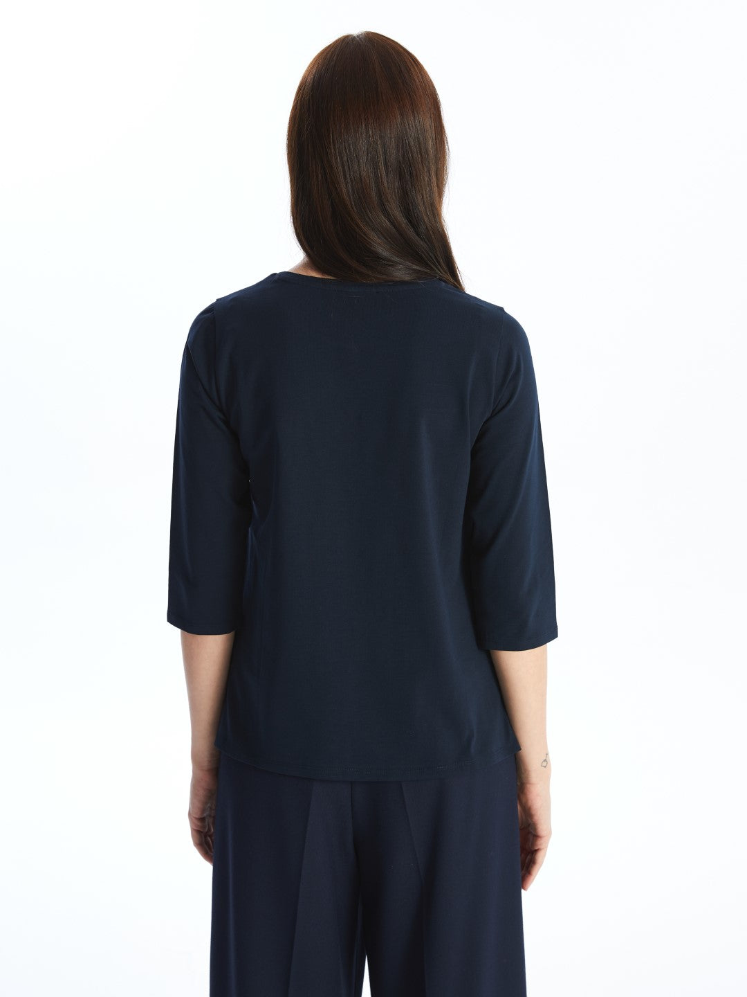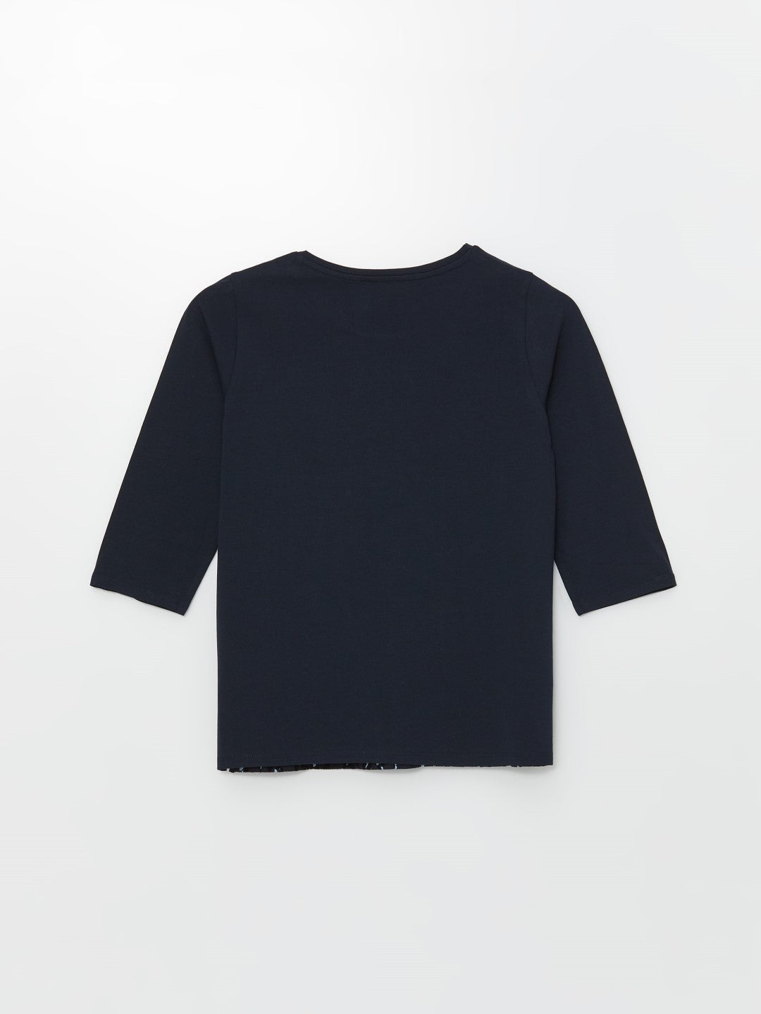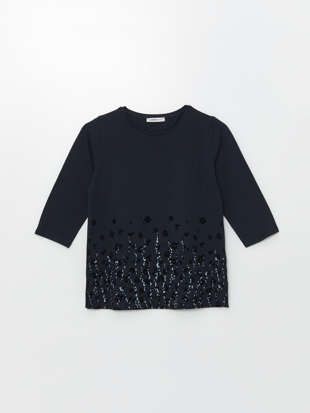 LCW Grace Navy Blue Crew Neck Patterned Women's T-Shirt