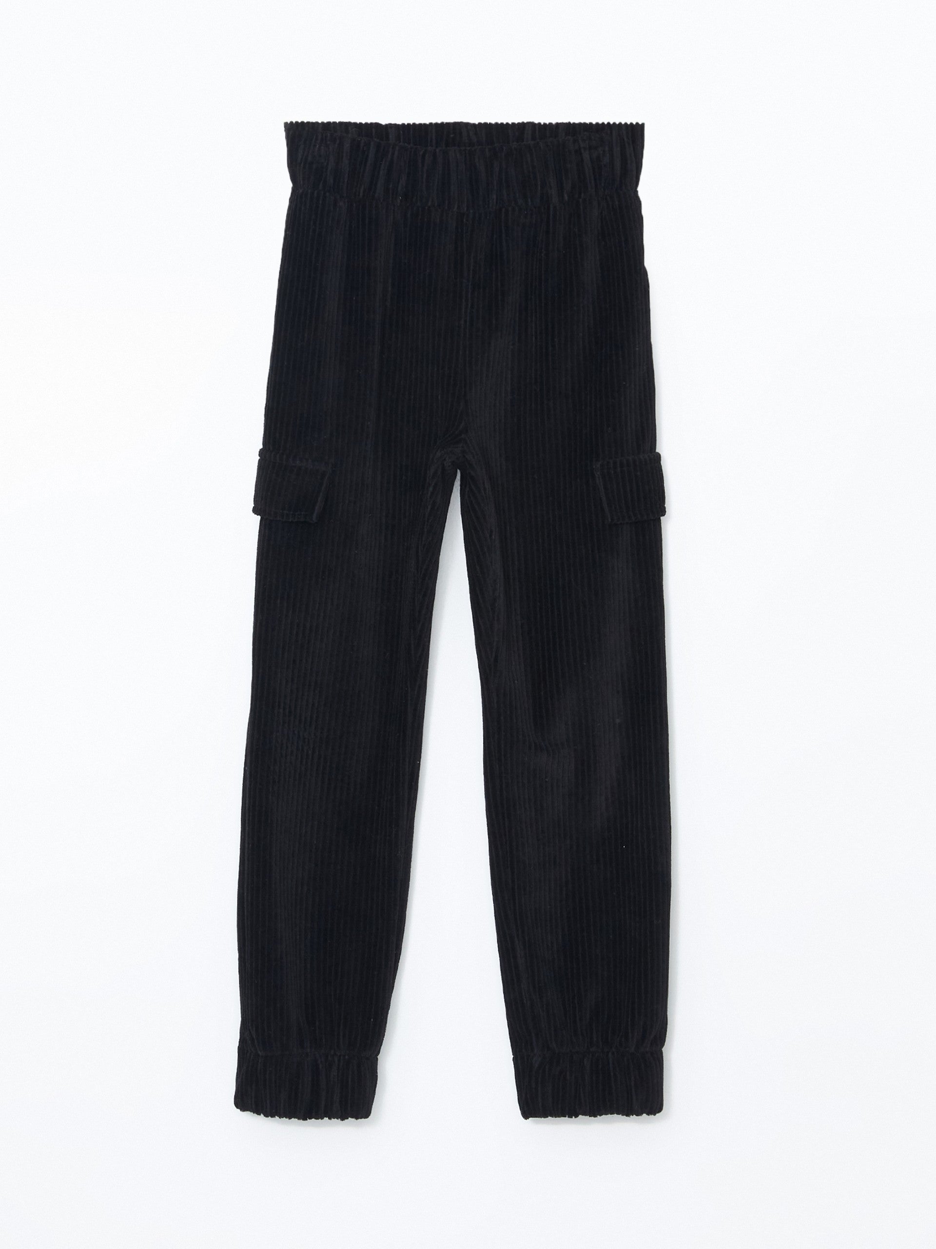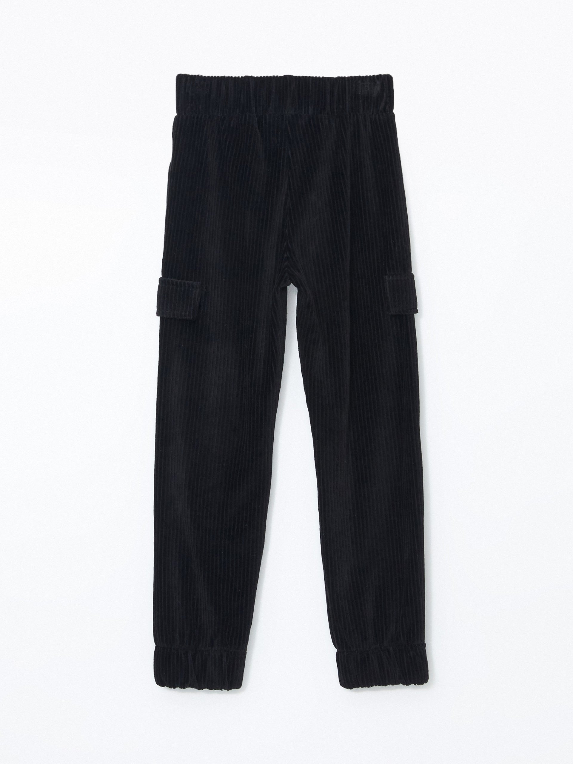 Lcw Kids Black Elastic Waist Velvet Girls Cargo Sweatpants