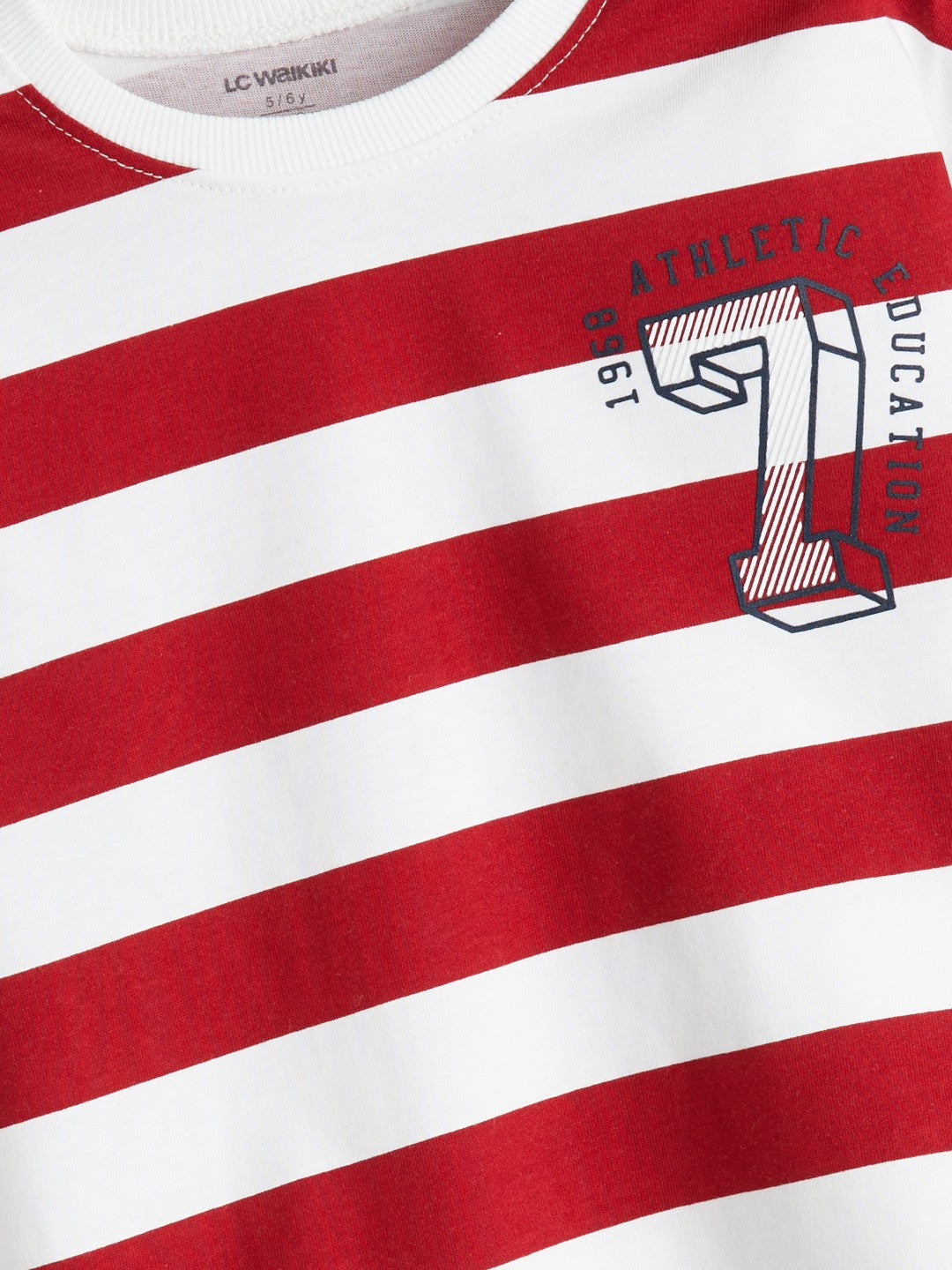 This crew neck boys t-shirt is made of combed cotton fabric. It's a 2-piece set: one striped and one printed.