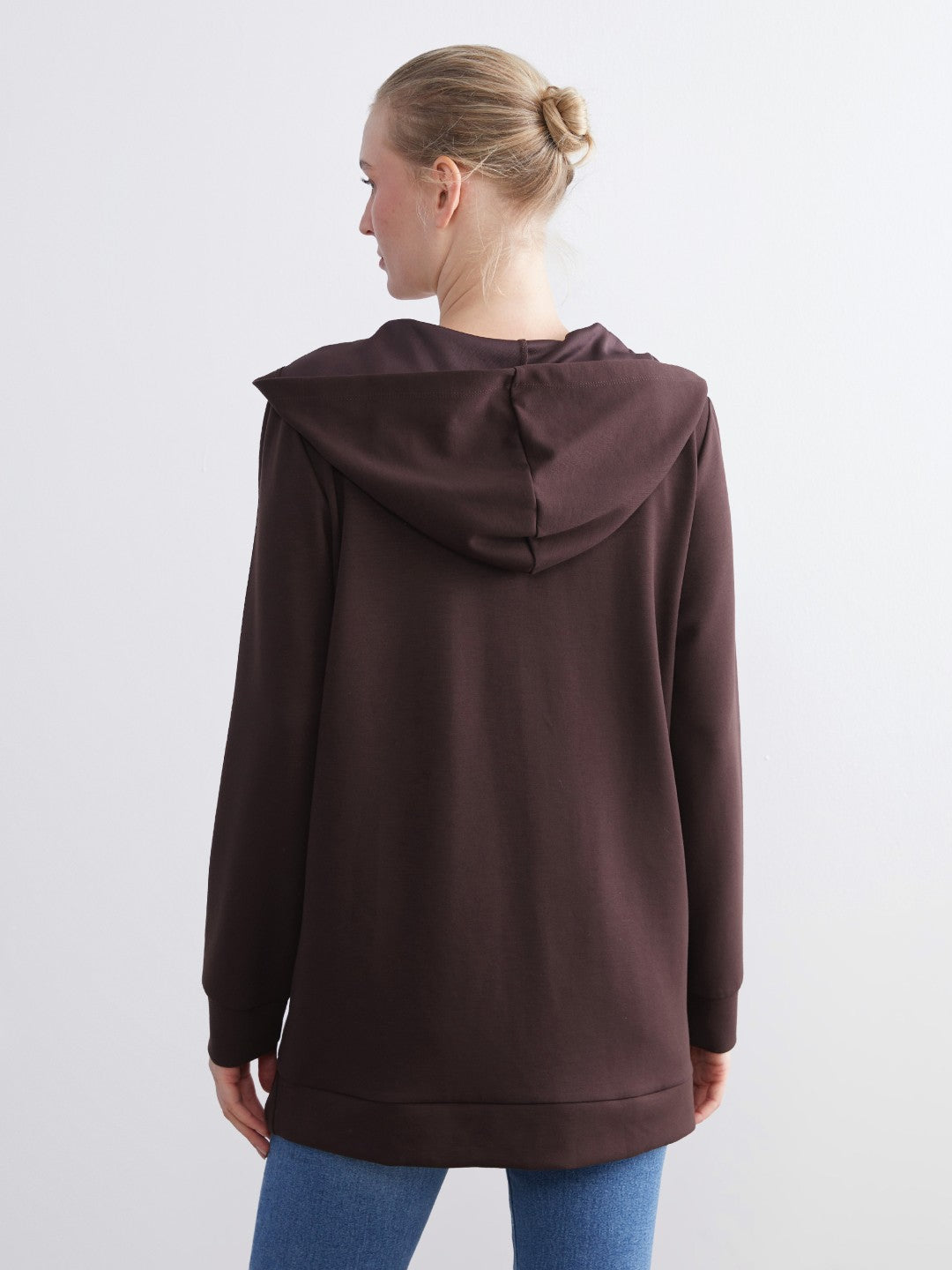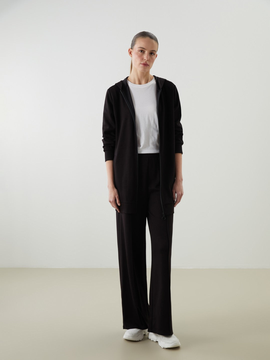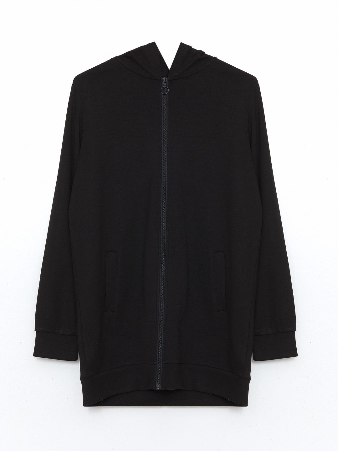 LCW Classic Black Hooded Oversize Women Zippered Sweatshirt