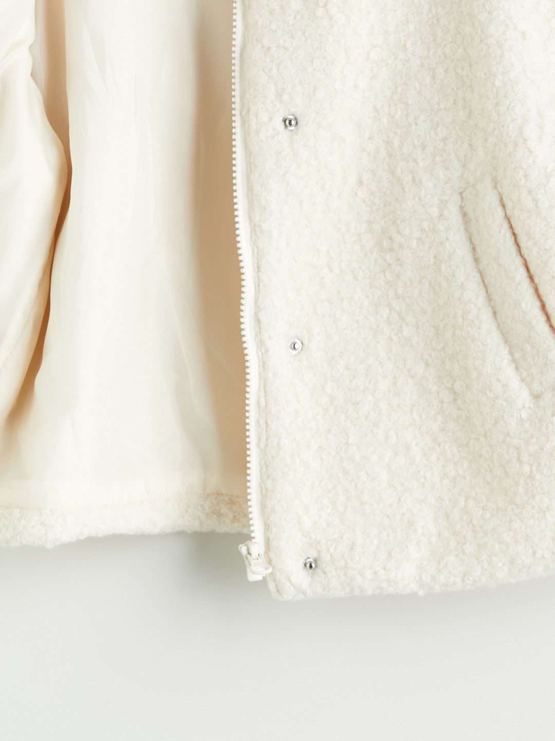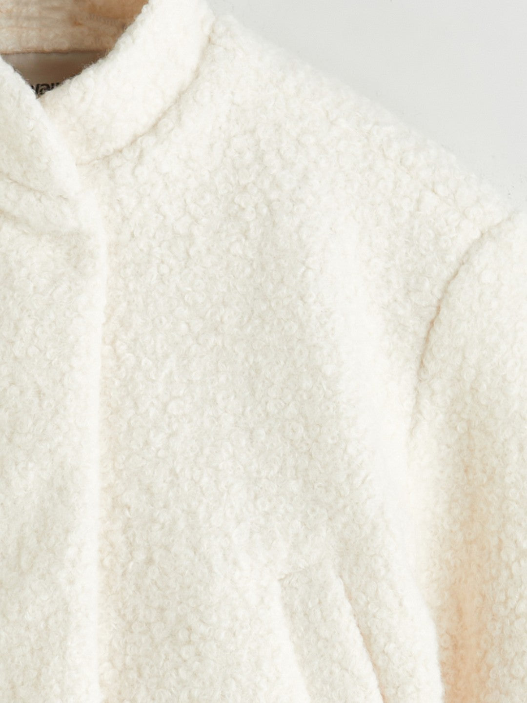 Made from cashmere fabric, this girls coat features a stand-up collar, long sleeves, a concealed front placket, and two side pockets.