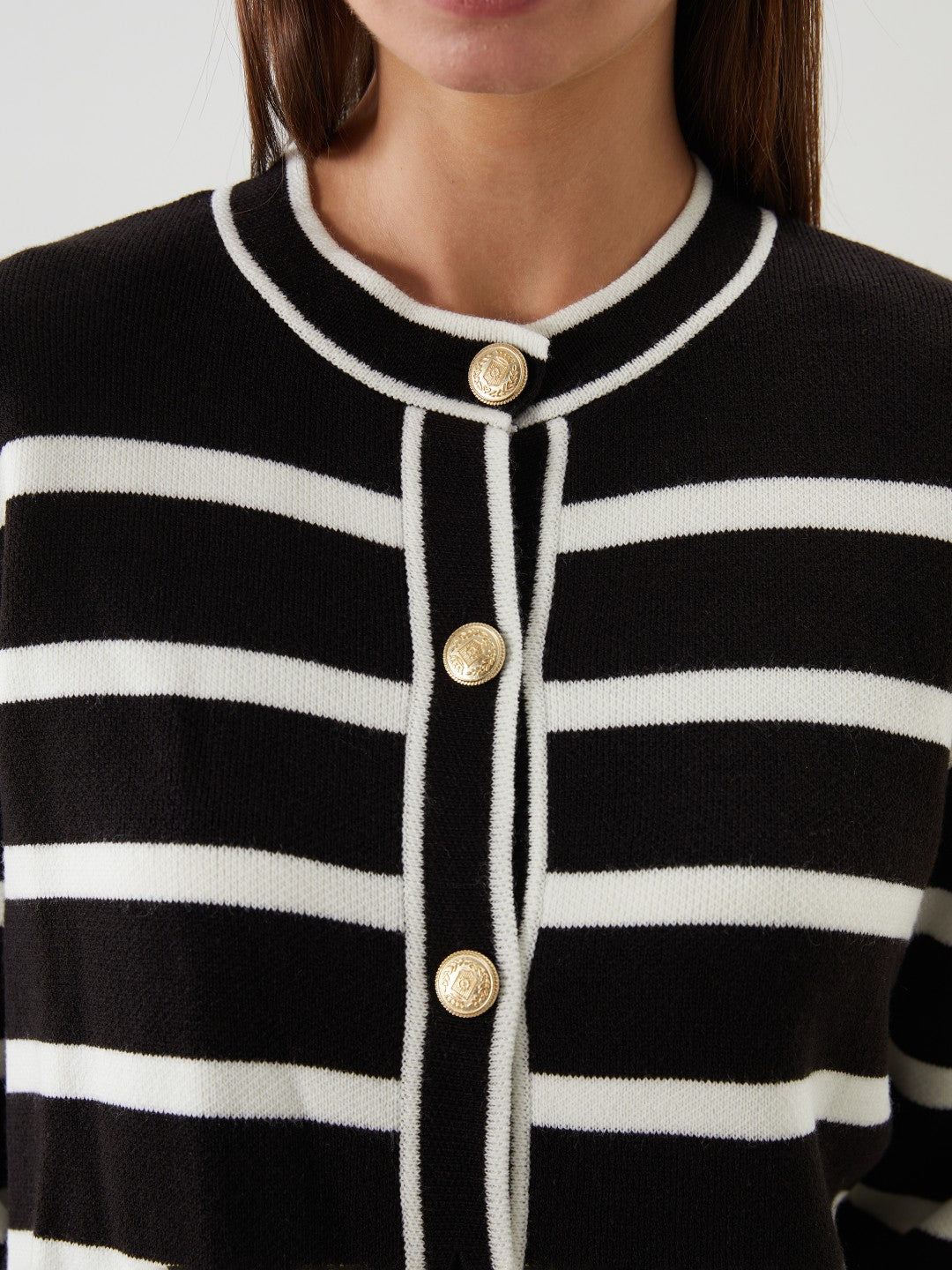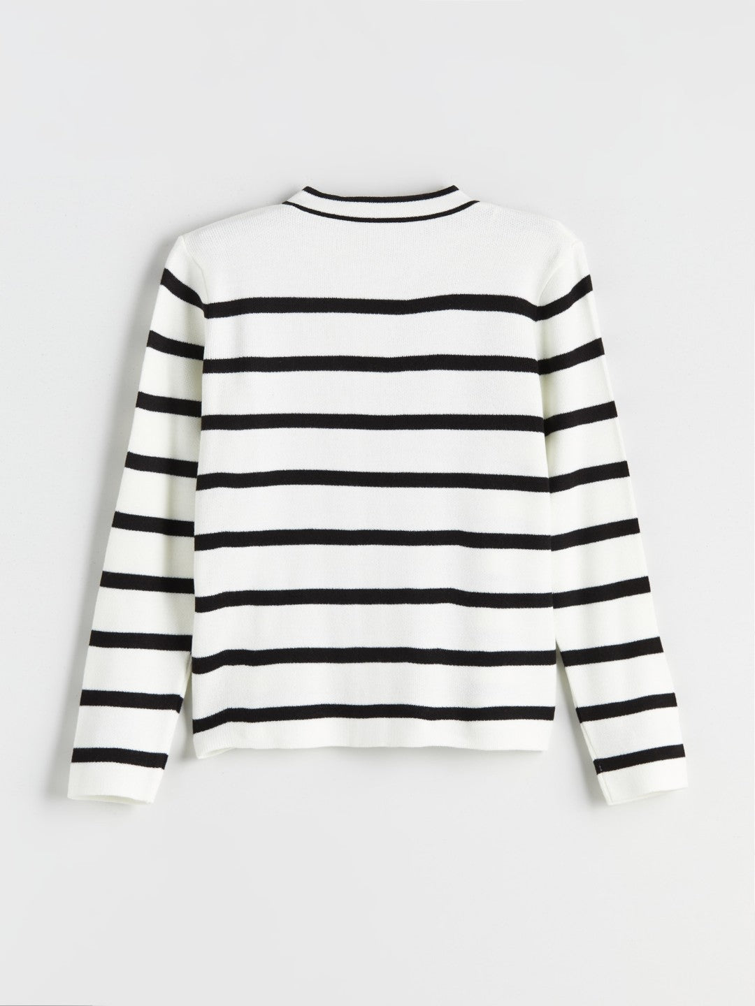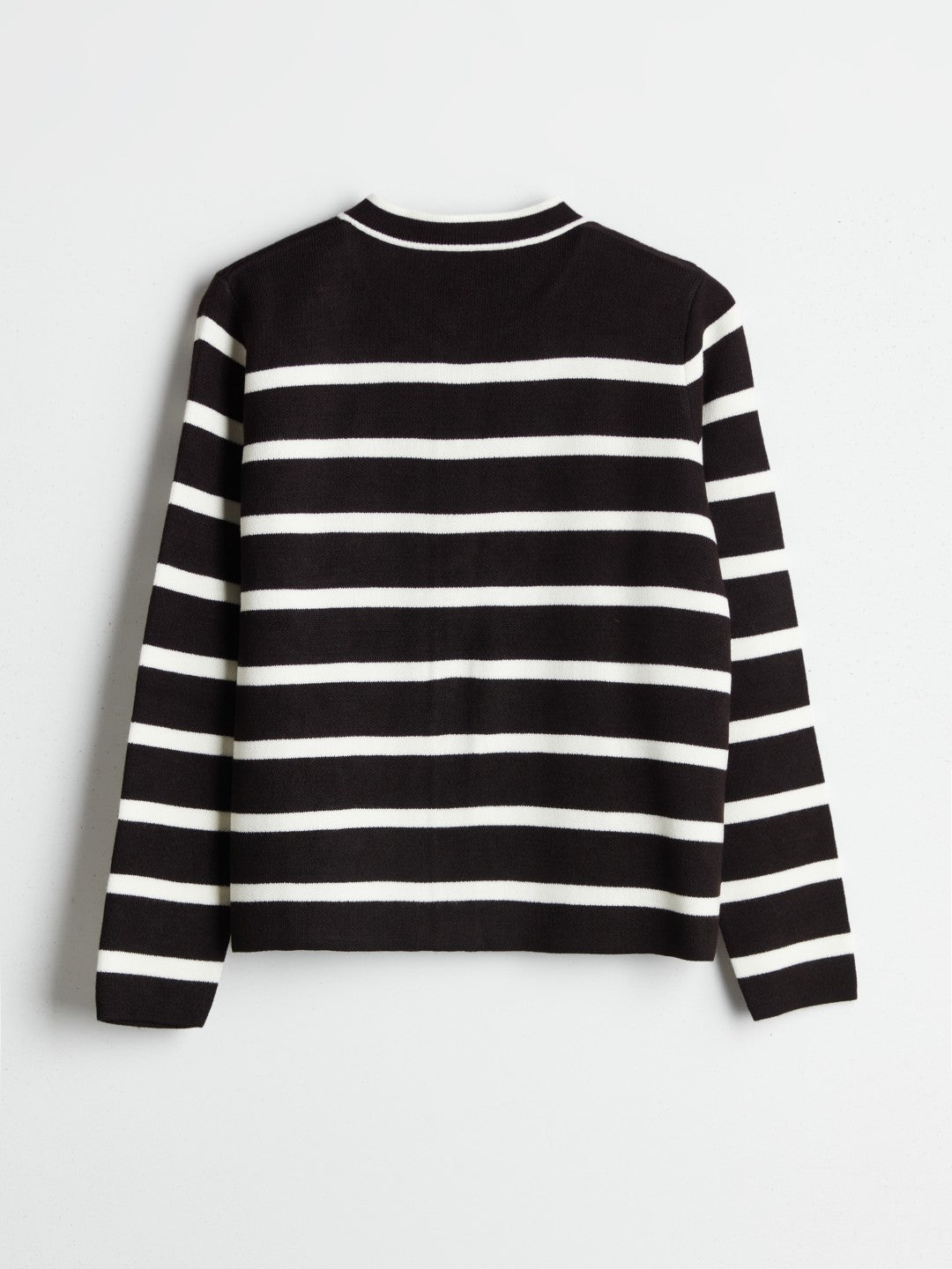 Women cardigan with a crew neck, long sleeves and striped pattern is made of medium-thick knitwear fabric and has a button-down front.
