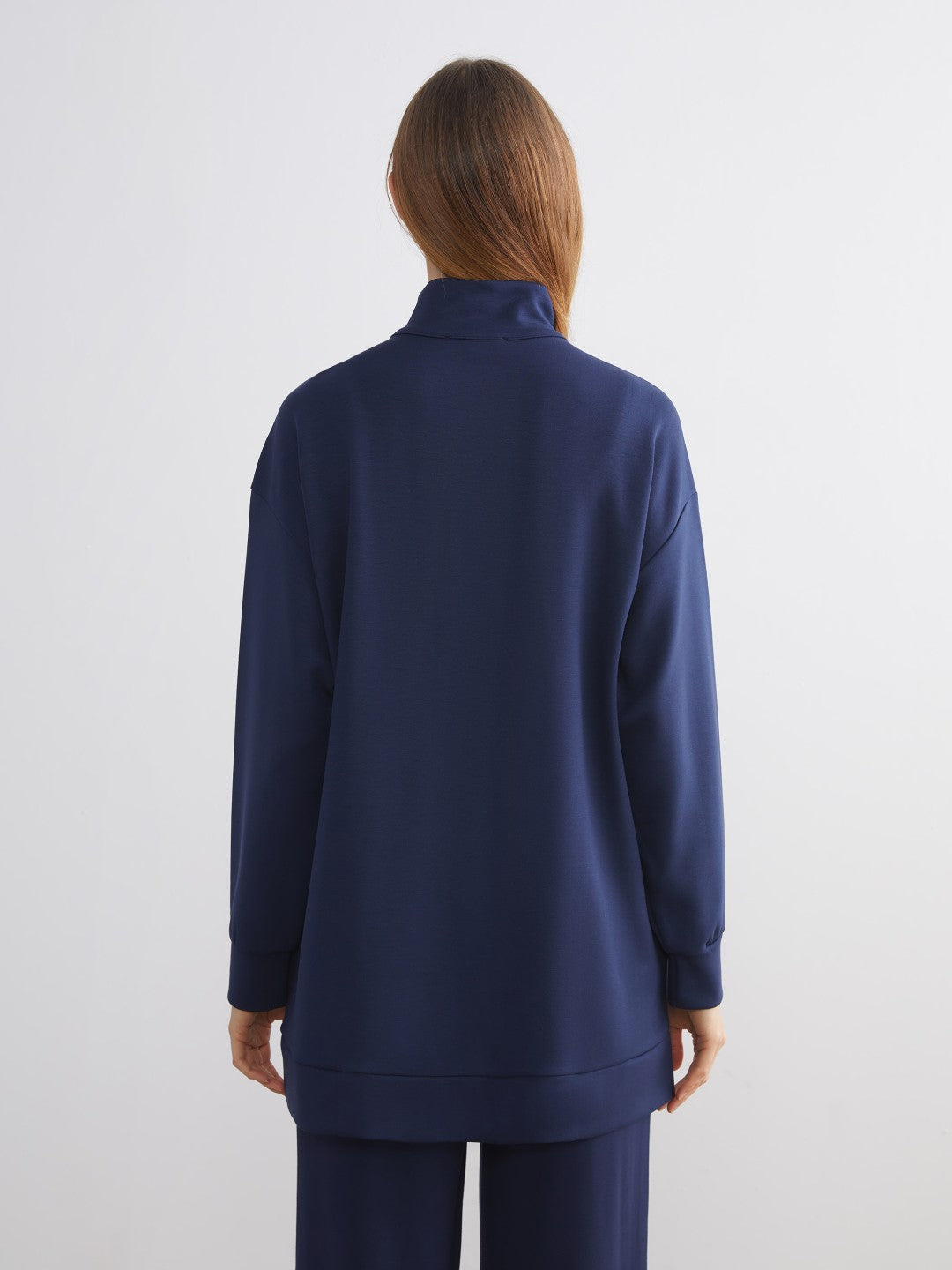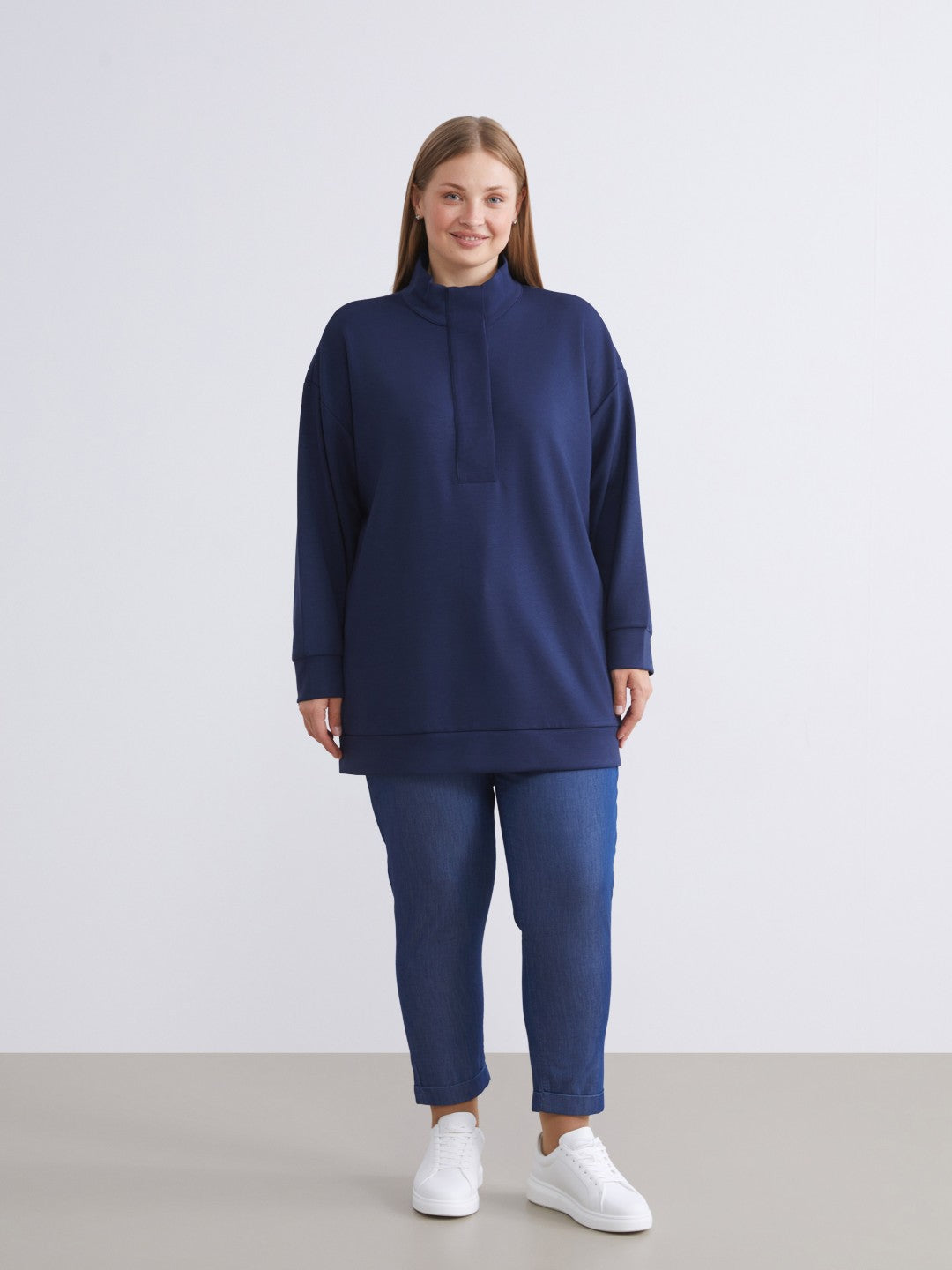LCW Modest Navy Blue Stand Collar Oversize Women Sweatshirt Tunic