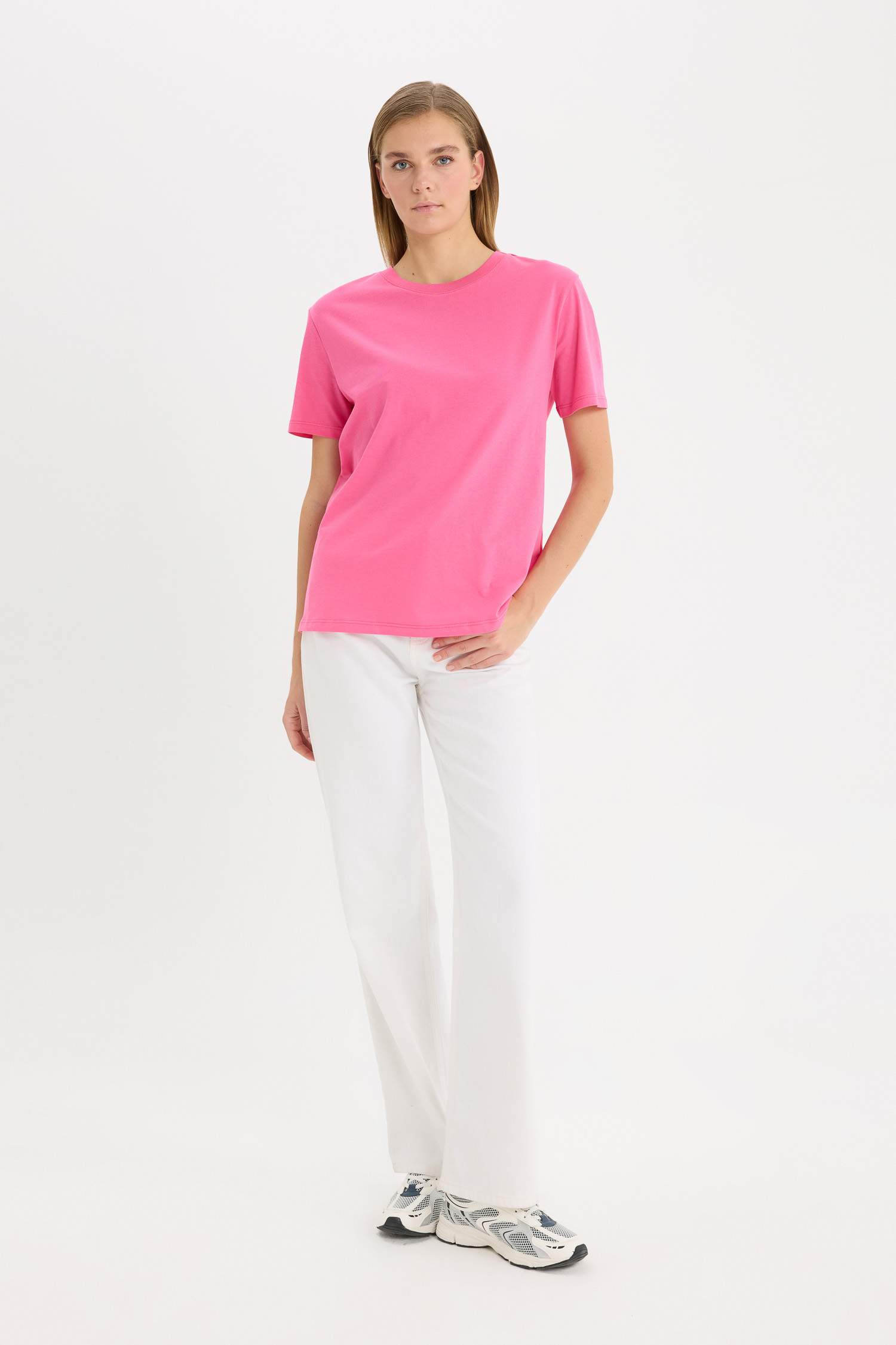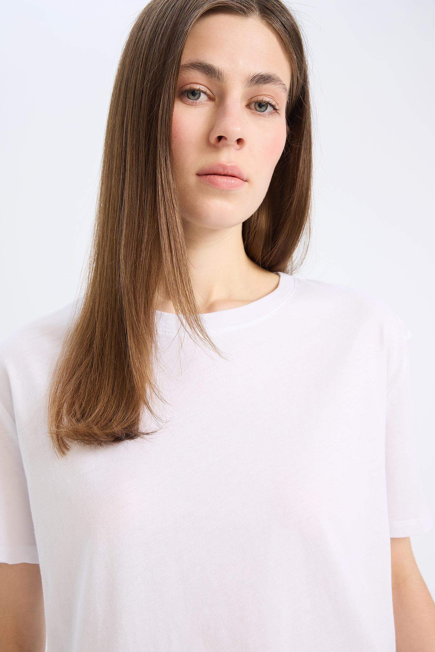 Regular Fit Cycling Collar Basic Flat Combed Short Sleeve T-shirt