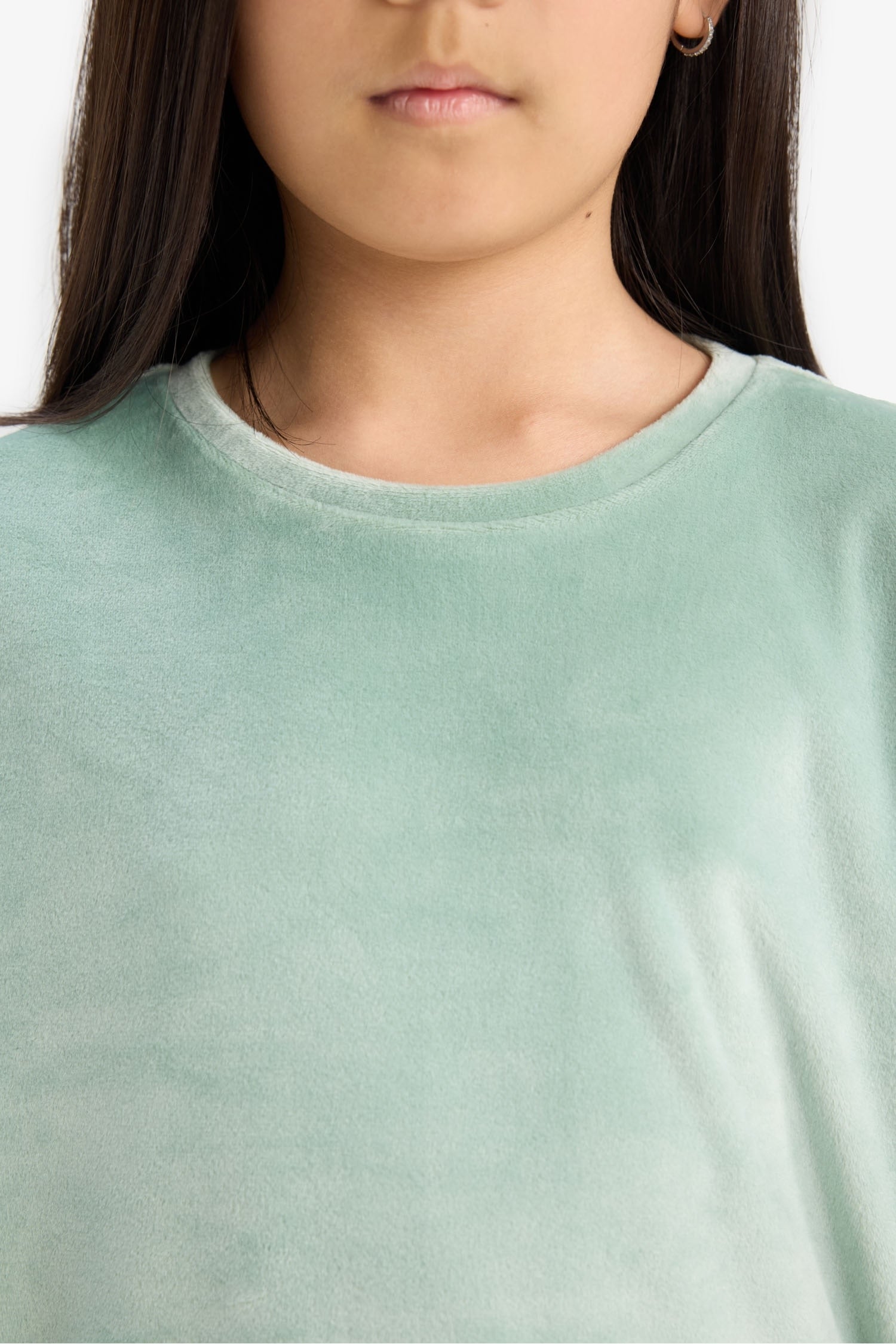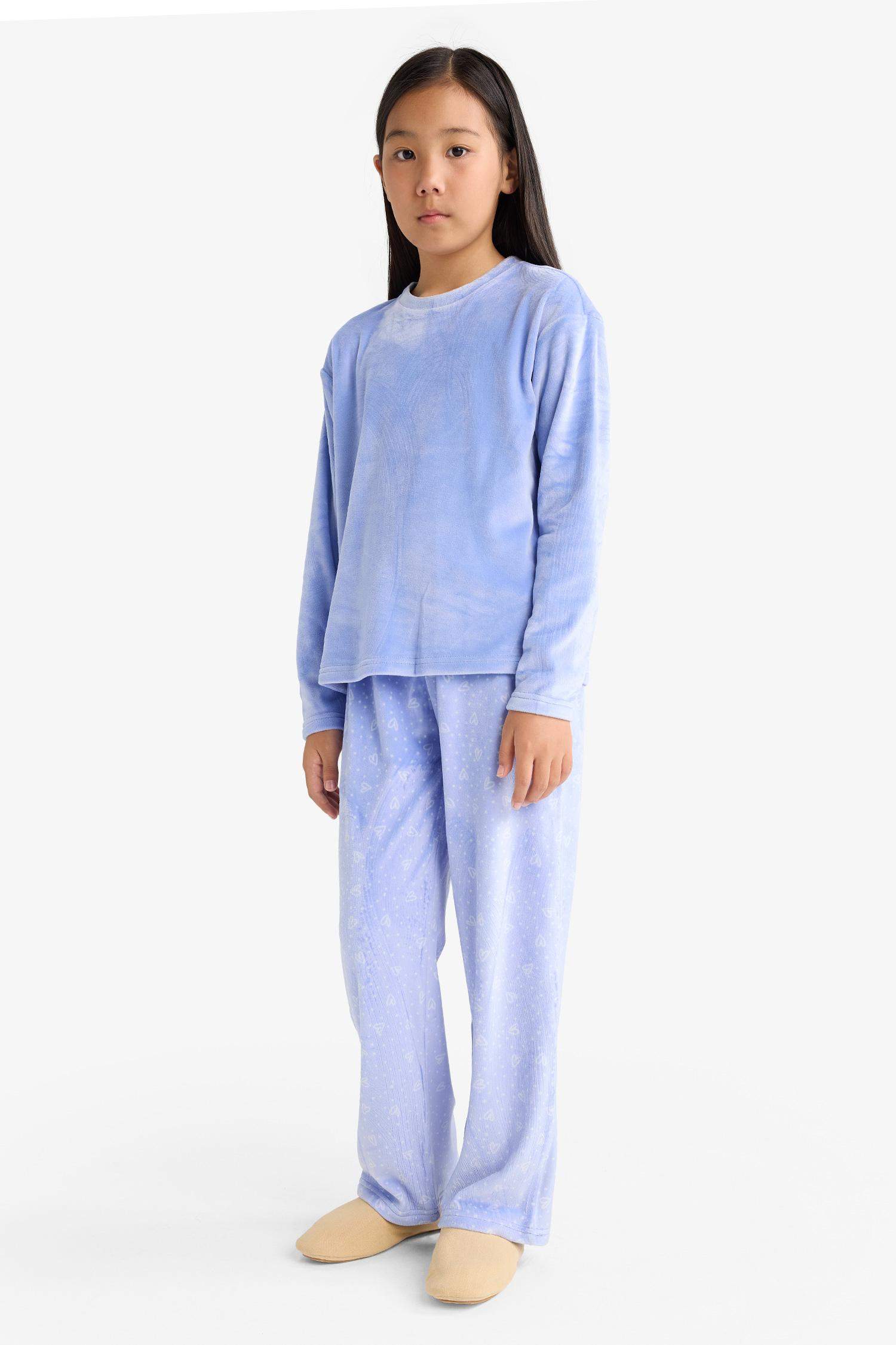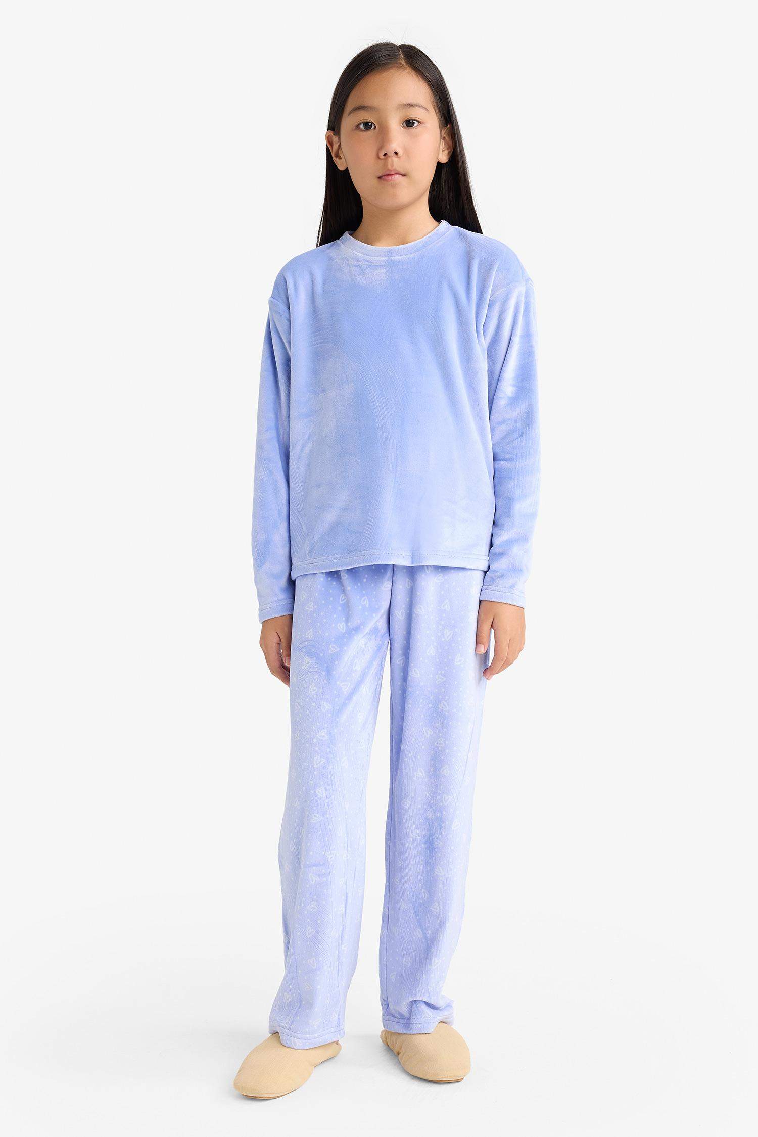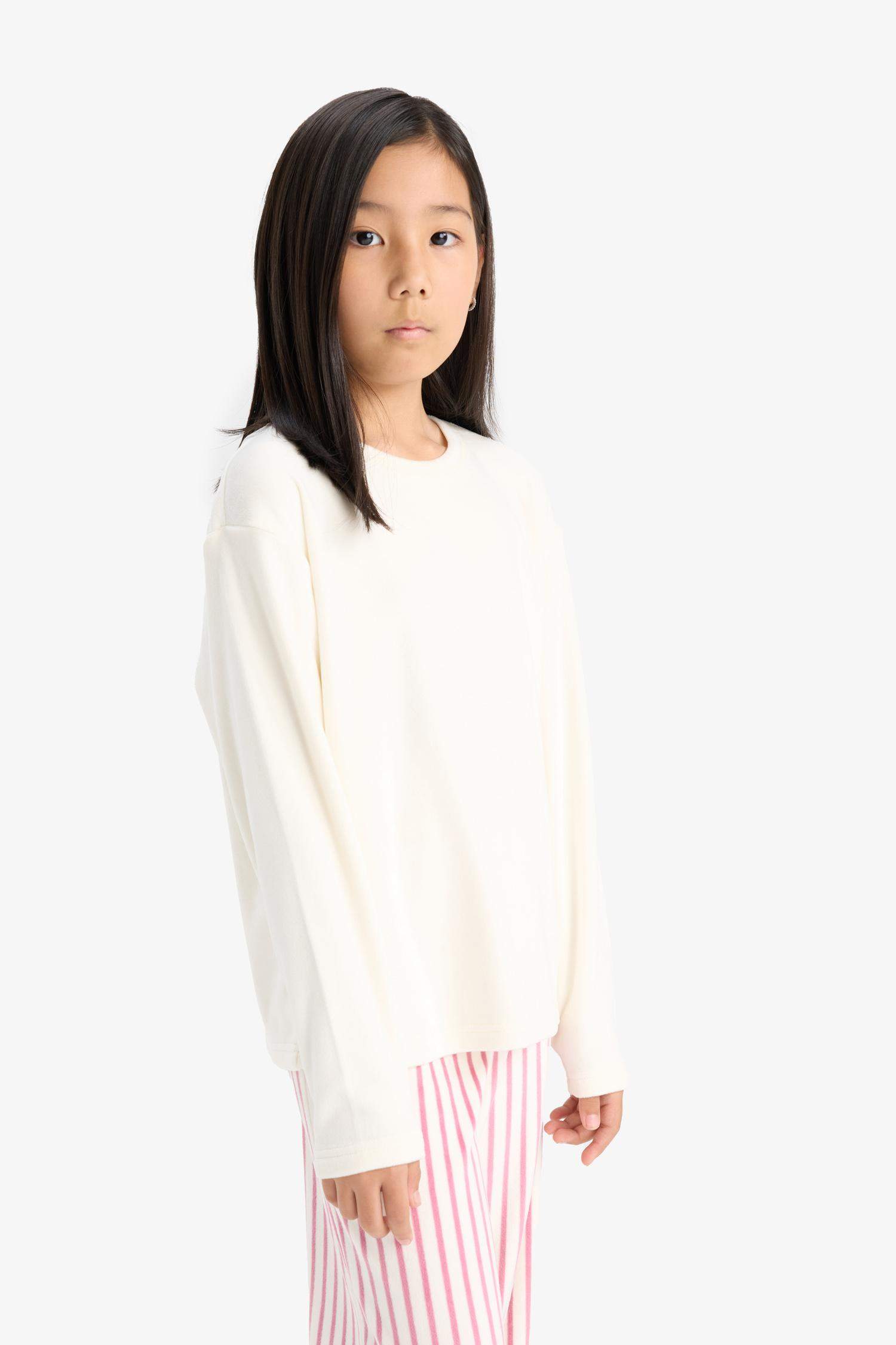 Girls Pajama Set Fleece Long Sleeve Top Striped Long Bottom
